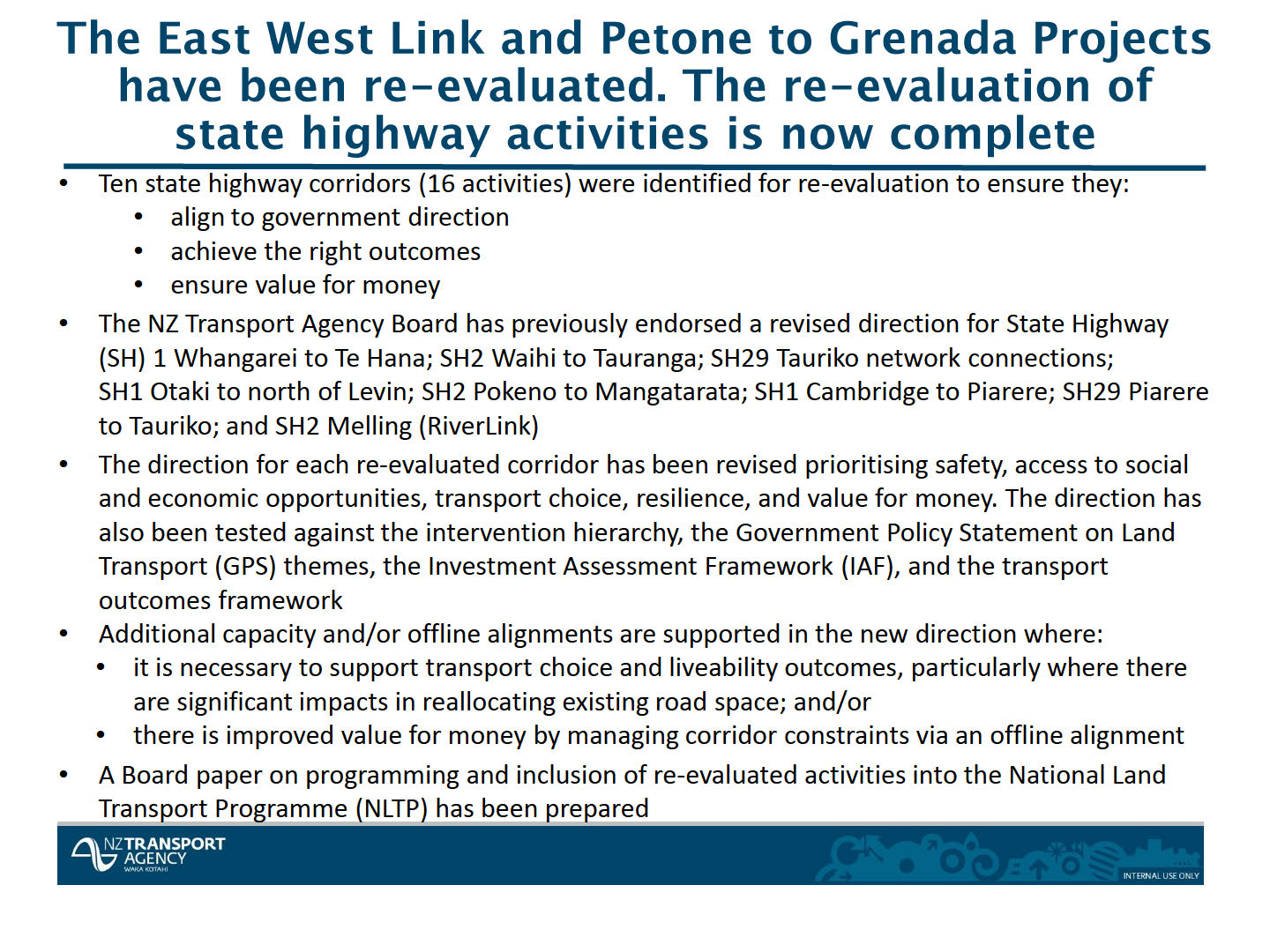 Re-evaluation findings for East West Link and Petone to
