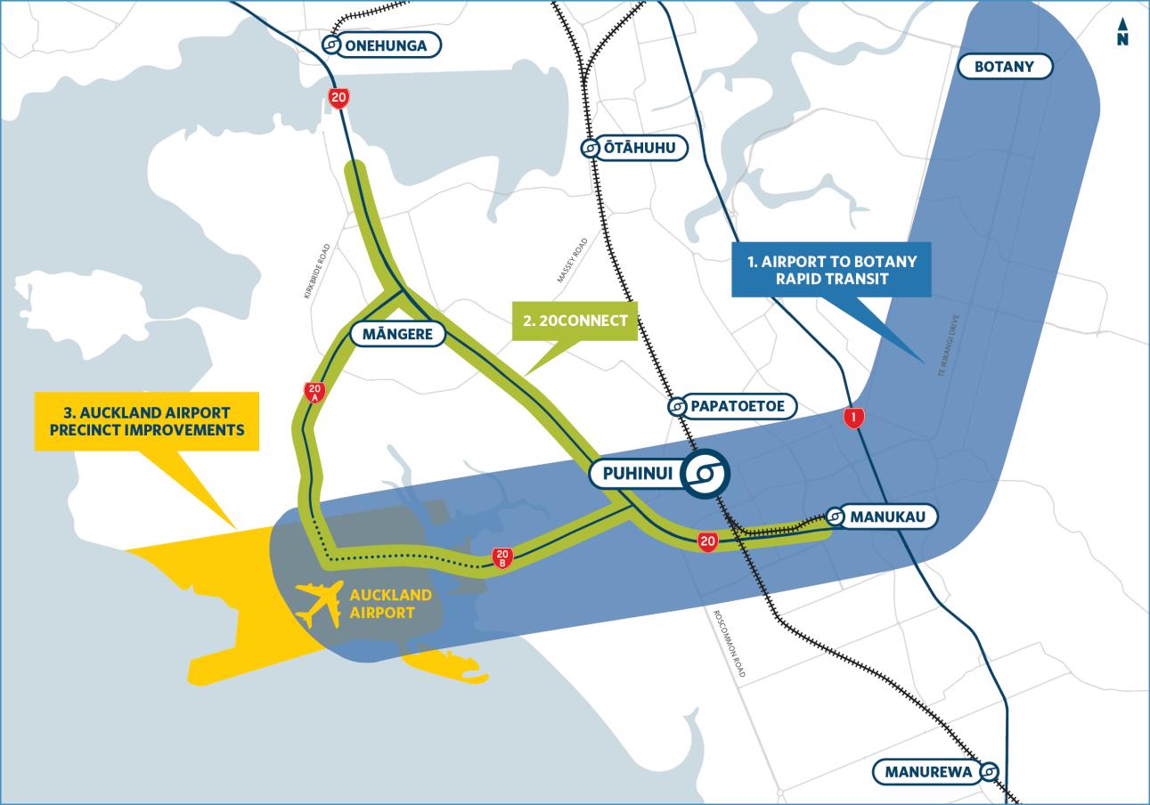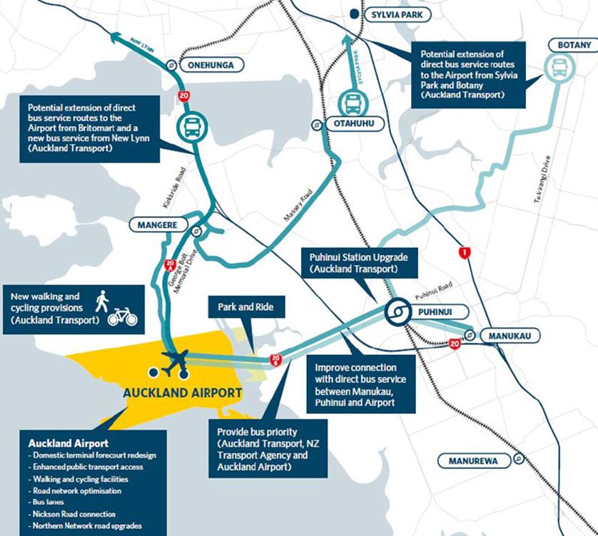 workers accessing the city centre and south via a transfer to rail at Puhinui; and