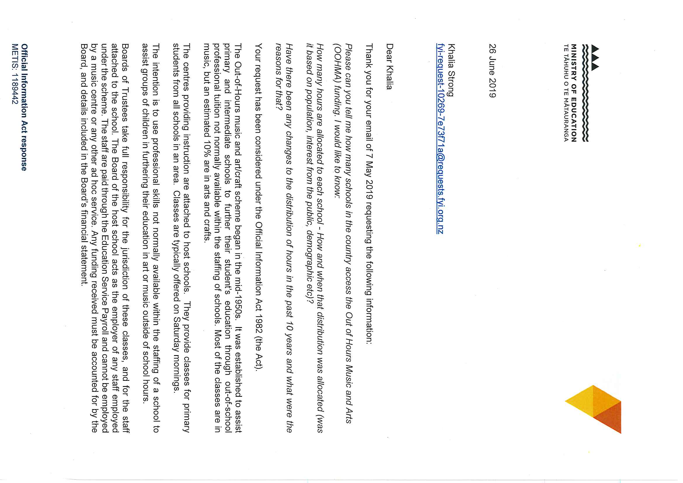 Out of Hours Music schools, distribution of hours and when that was last reviewed.