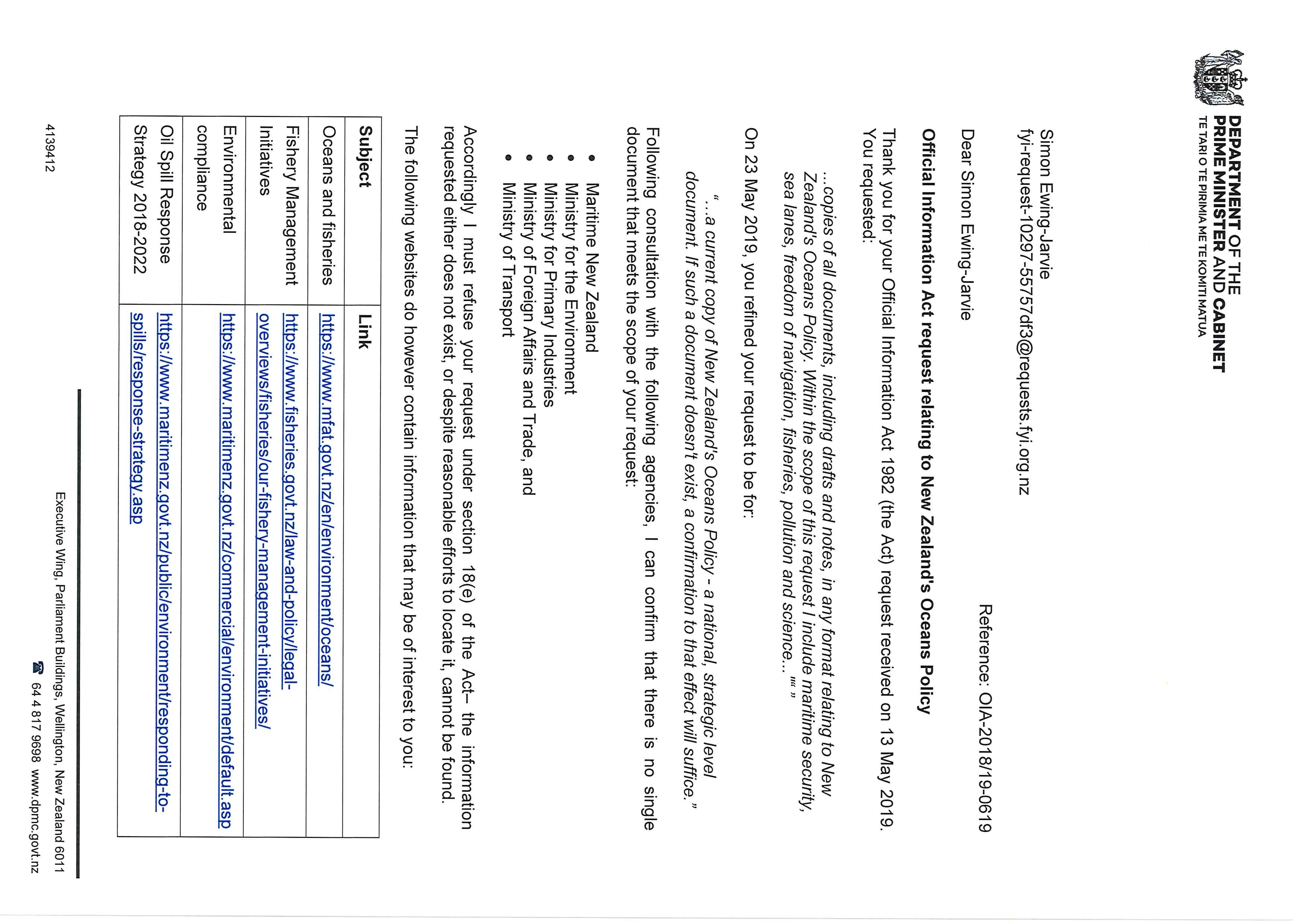 Documents relating to New Zealand's Oceans Policy