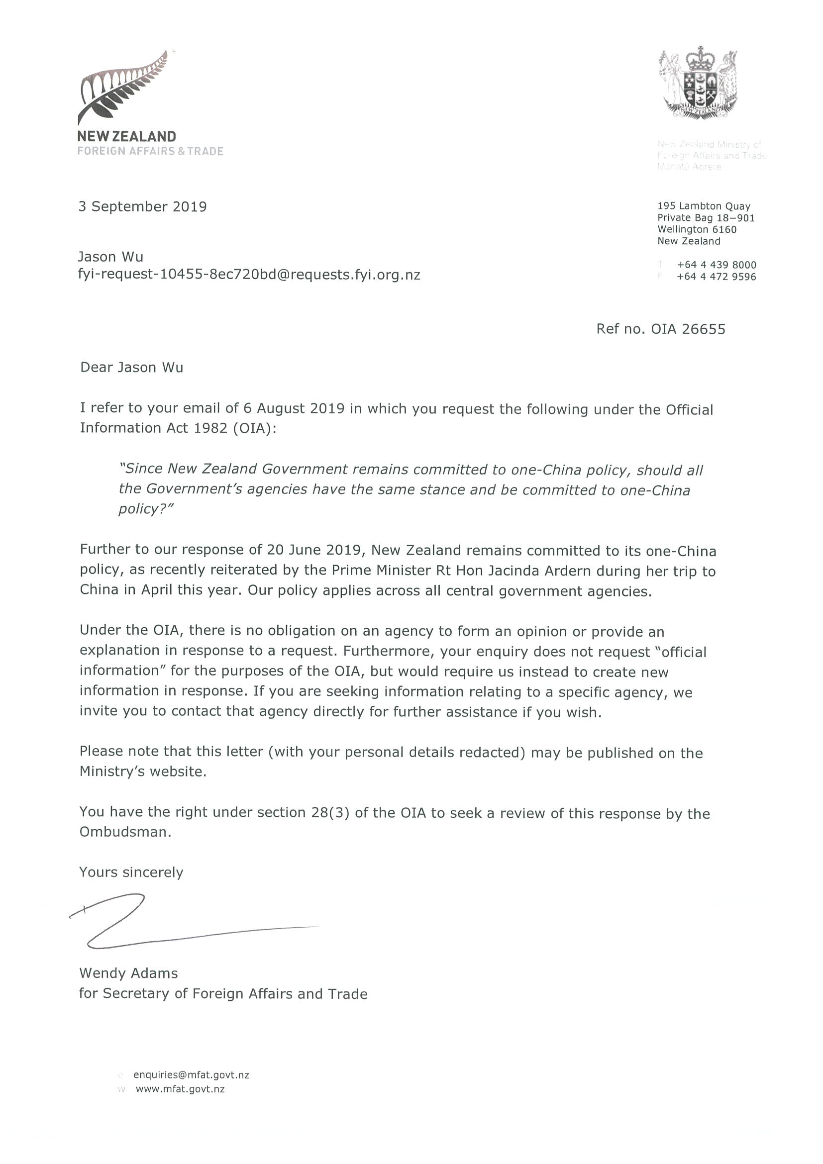 Clarification of One-China policy