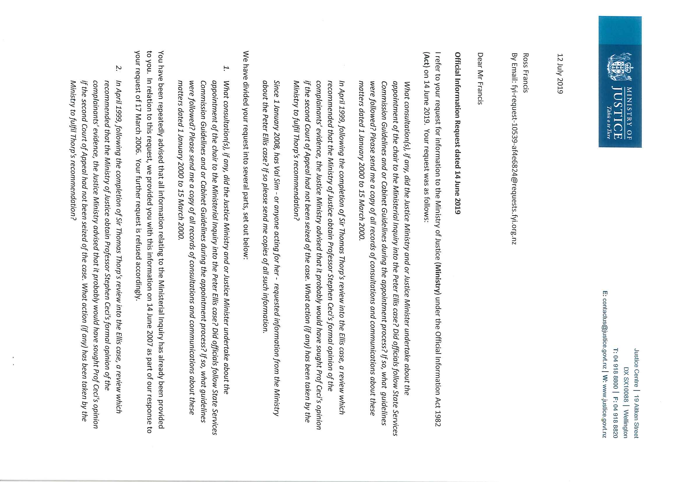Consultation about appointment to Ministerial Inquiry