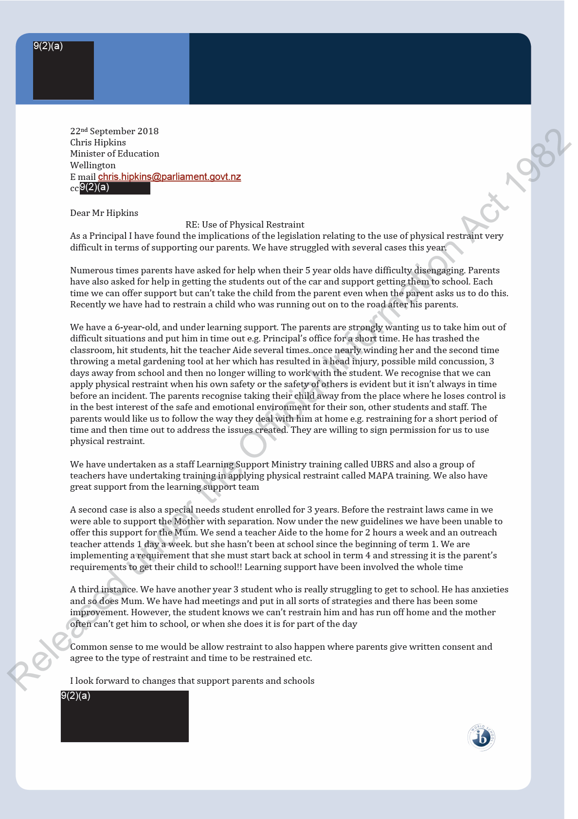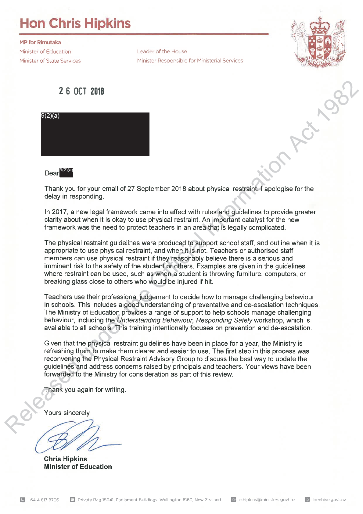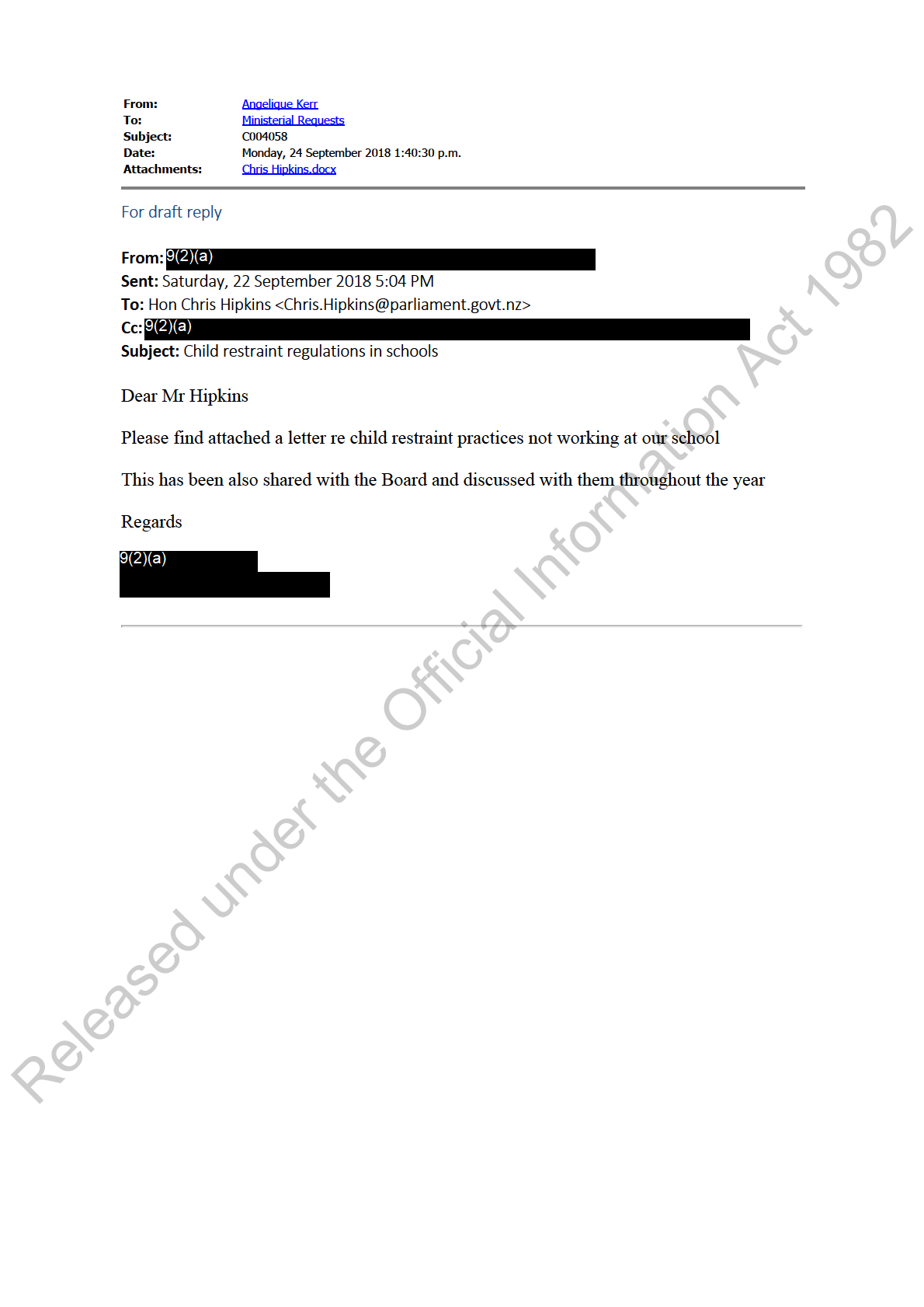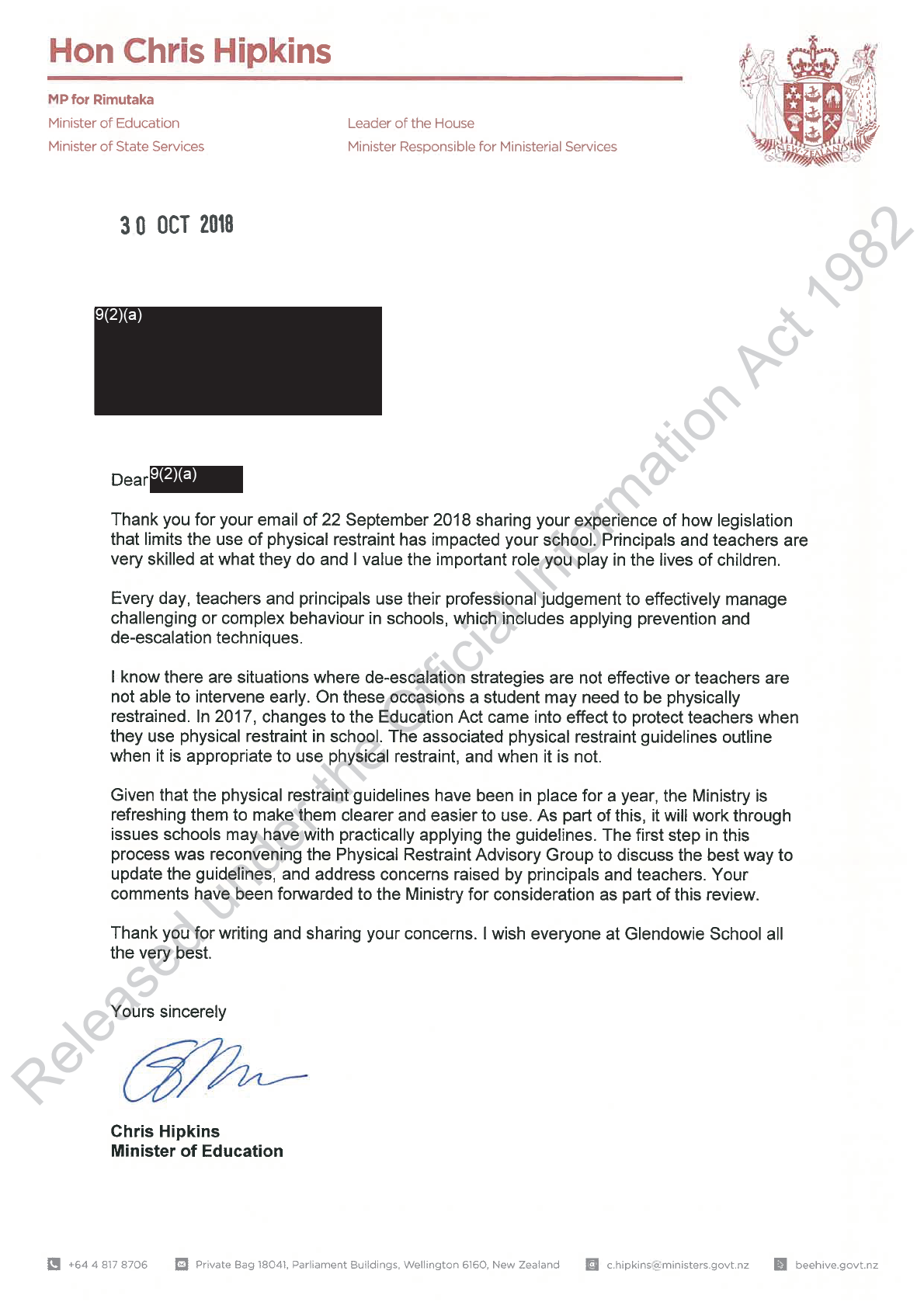 To: Hon Chris Hipkins <[email address]>