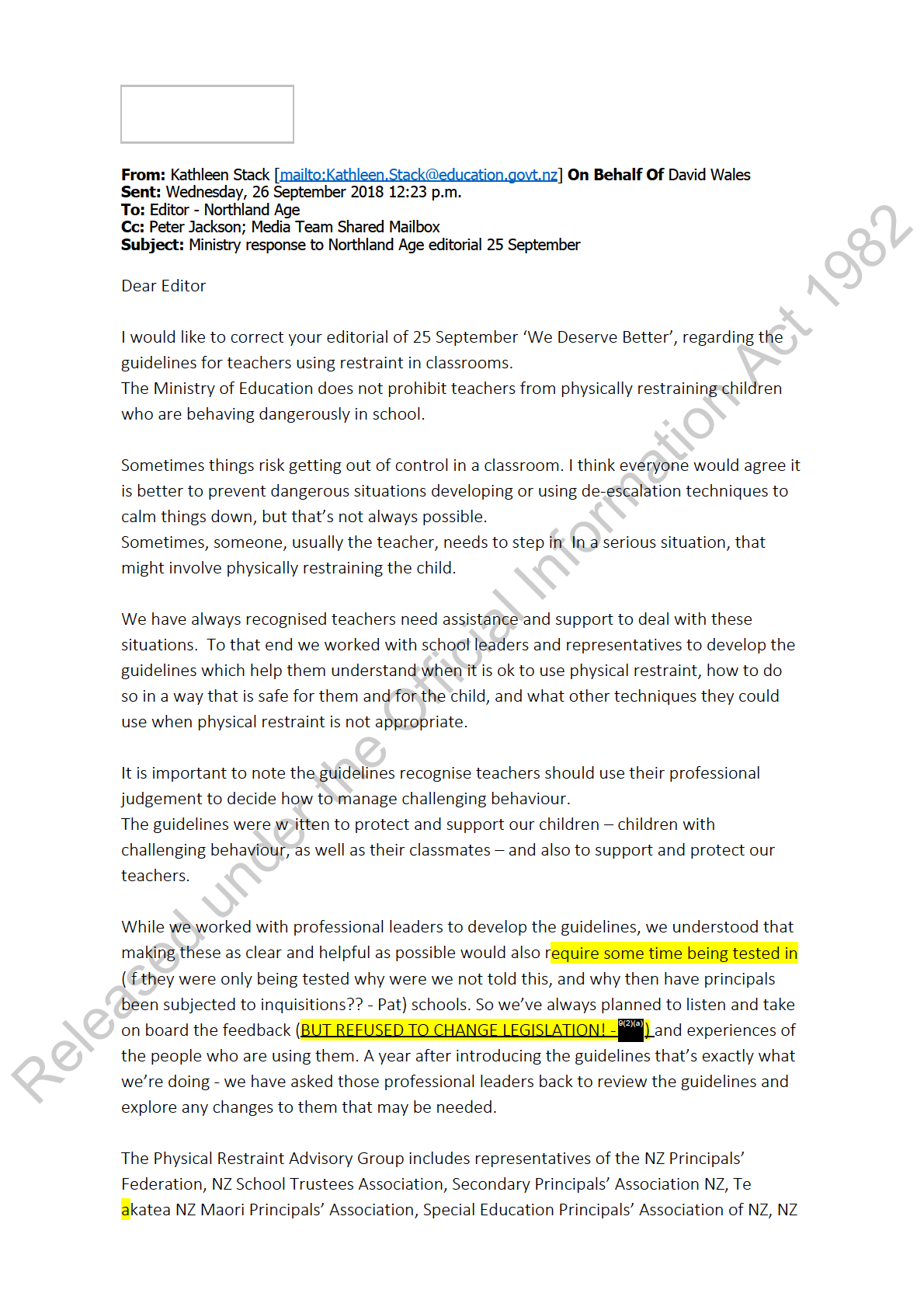 So the ministry is monitoring even the Northland Age. See the letter below to the Editor, from a