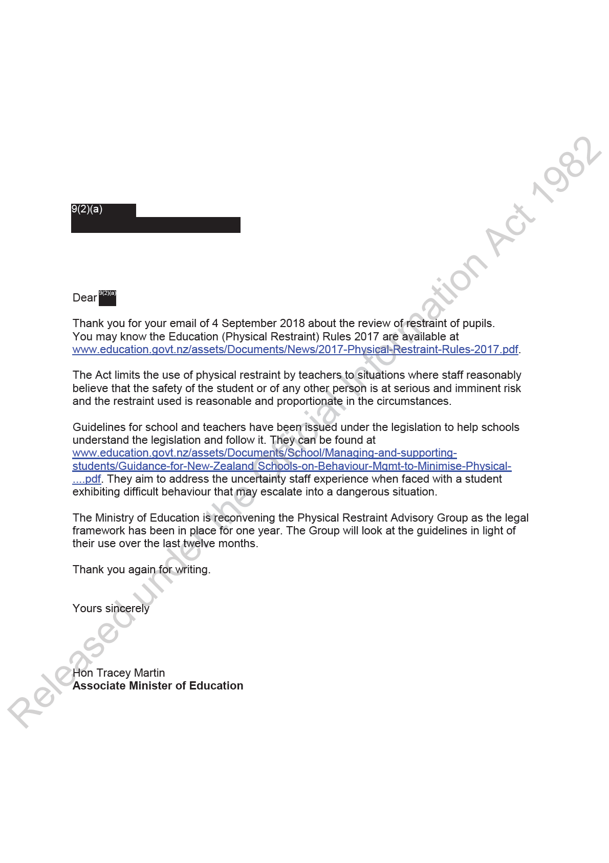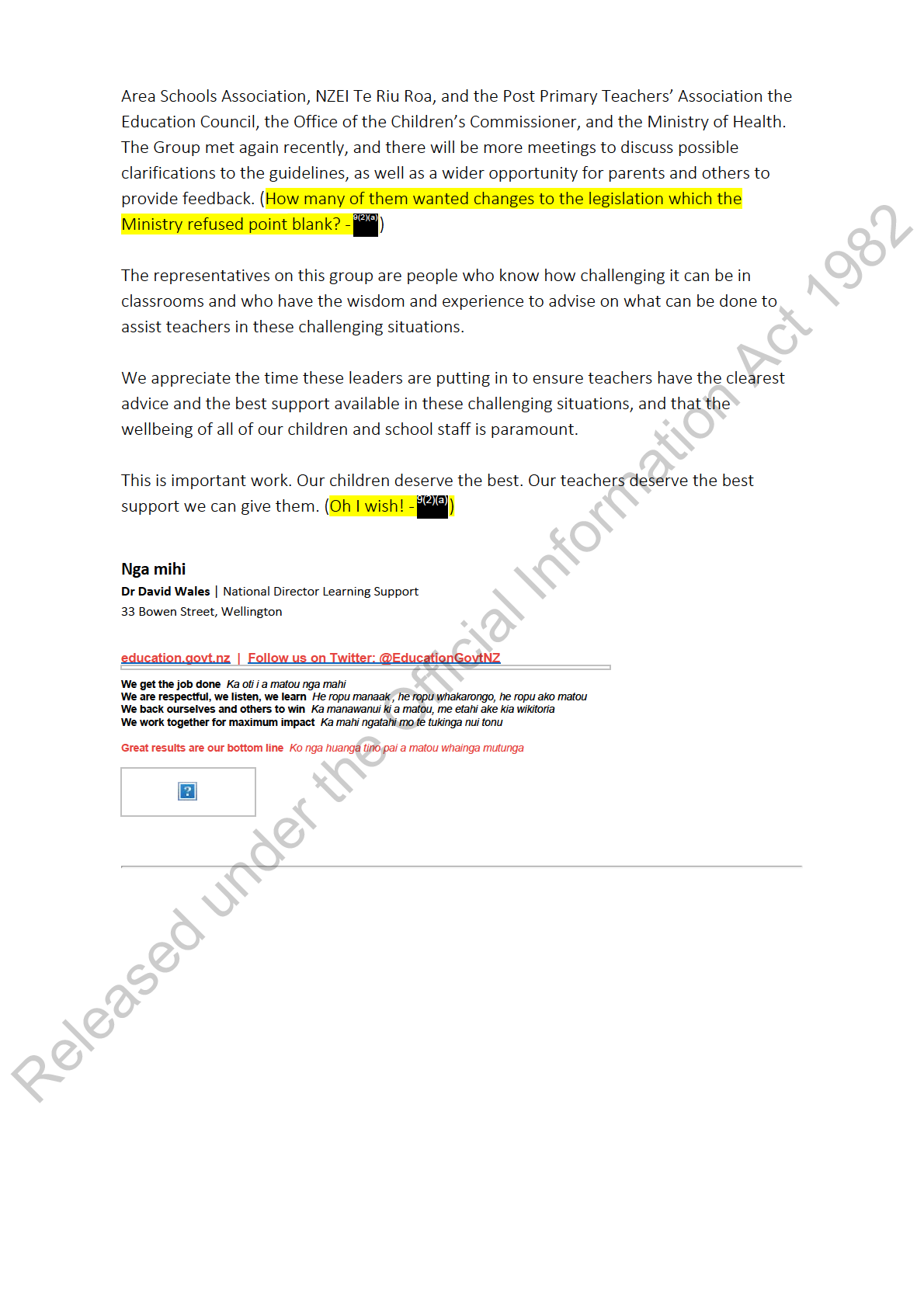 under the Official Information Act 1982