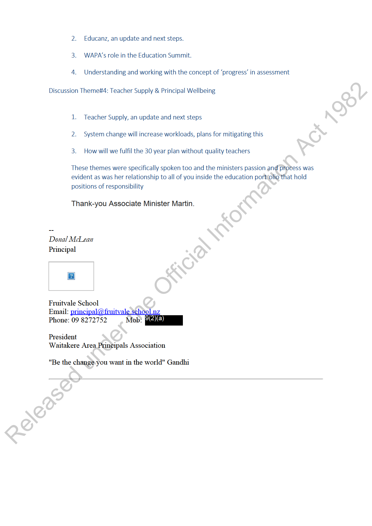 Subject: FW: Waitakere Area Principals Association meeting with Tracey Martin this morning