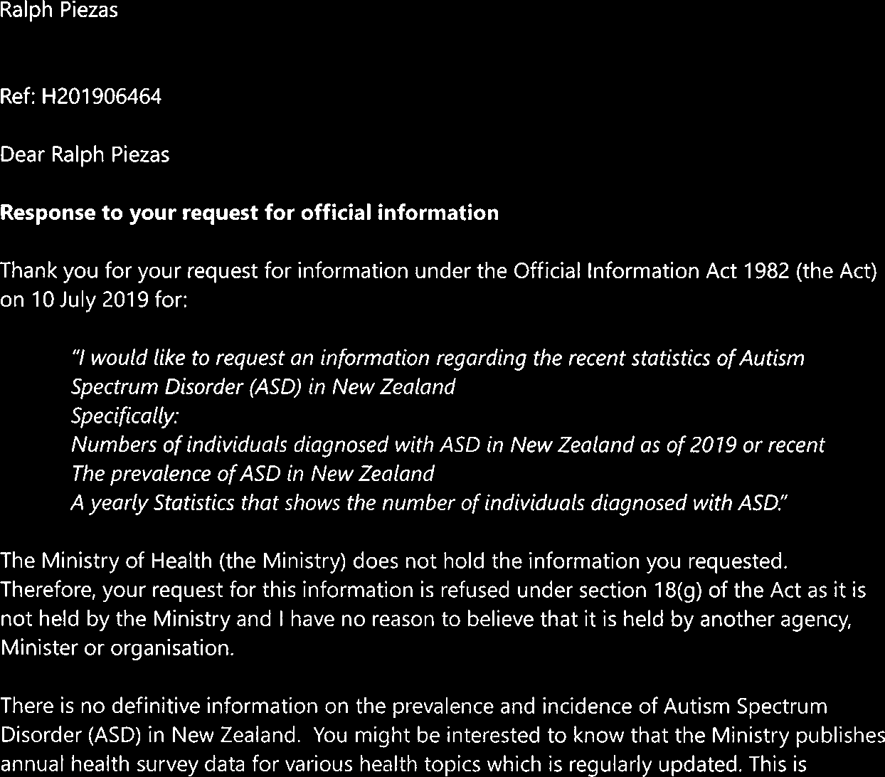 Statistics and prevalance of Autism Spectrum Disorder in New Zealand