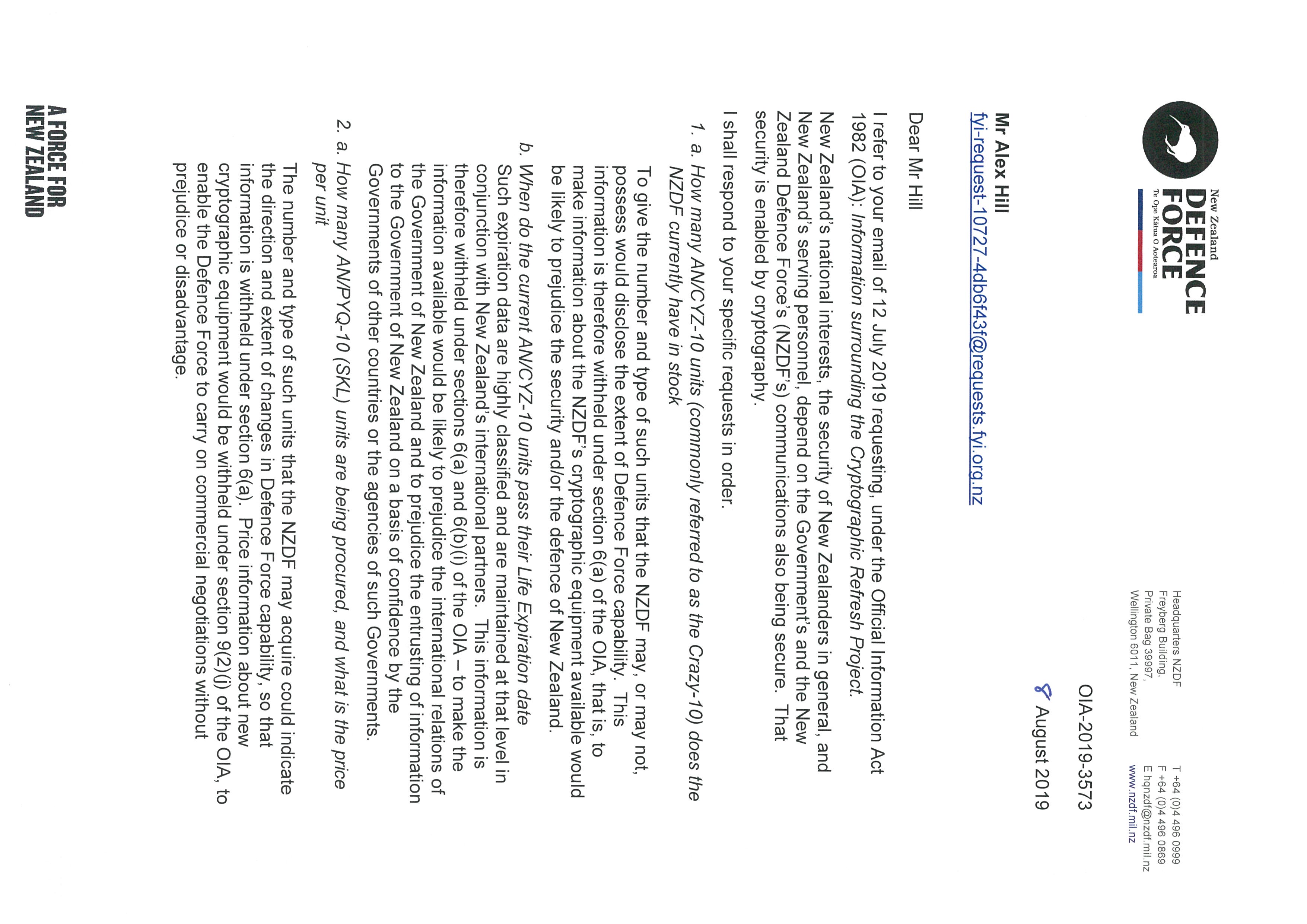 OIA Request - Information surrounding the Cryptographic Refresh Project