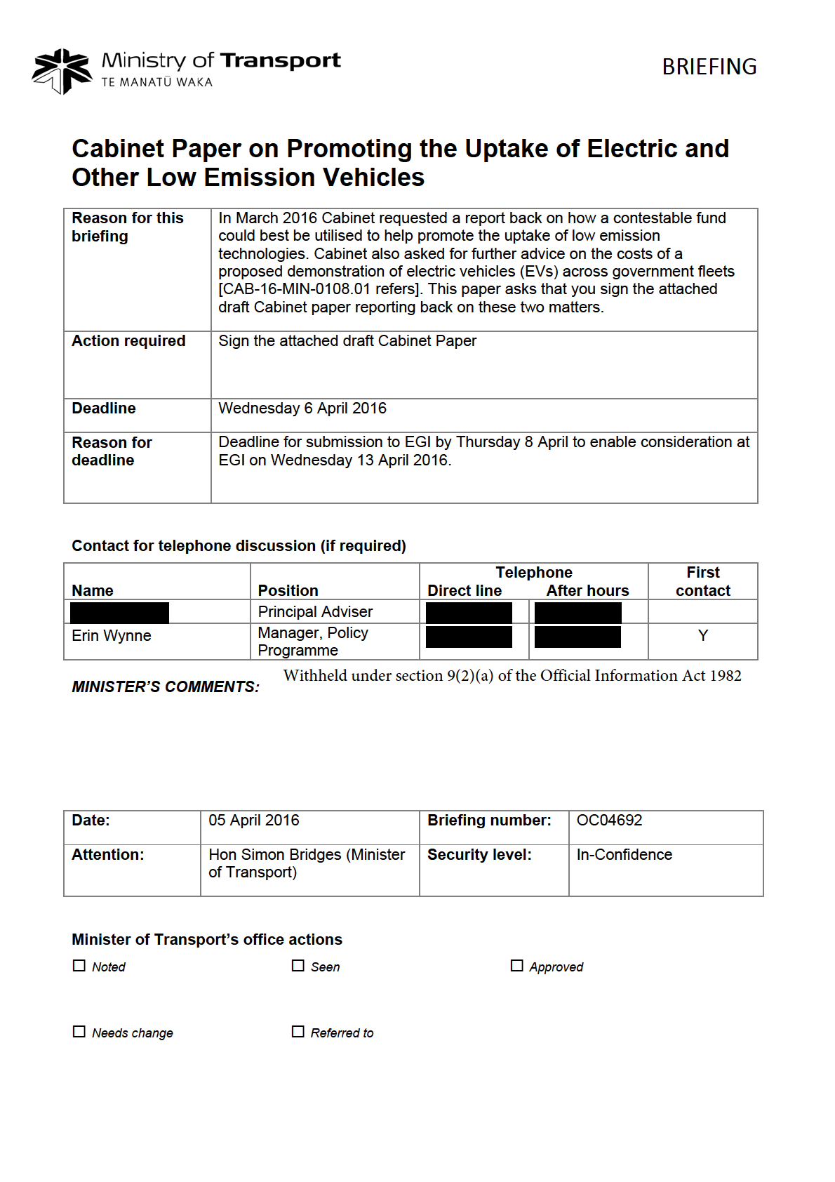 March 2016 Cabinet paper on electric vehicles [CAB-16-MIN-0108.01 refers]