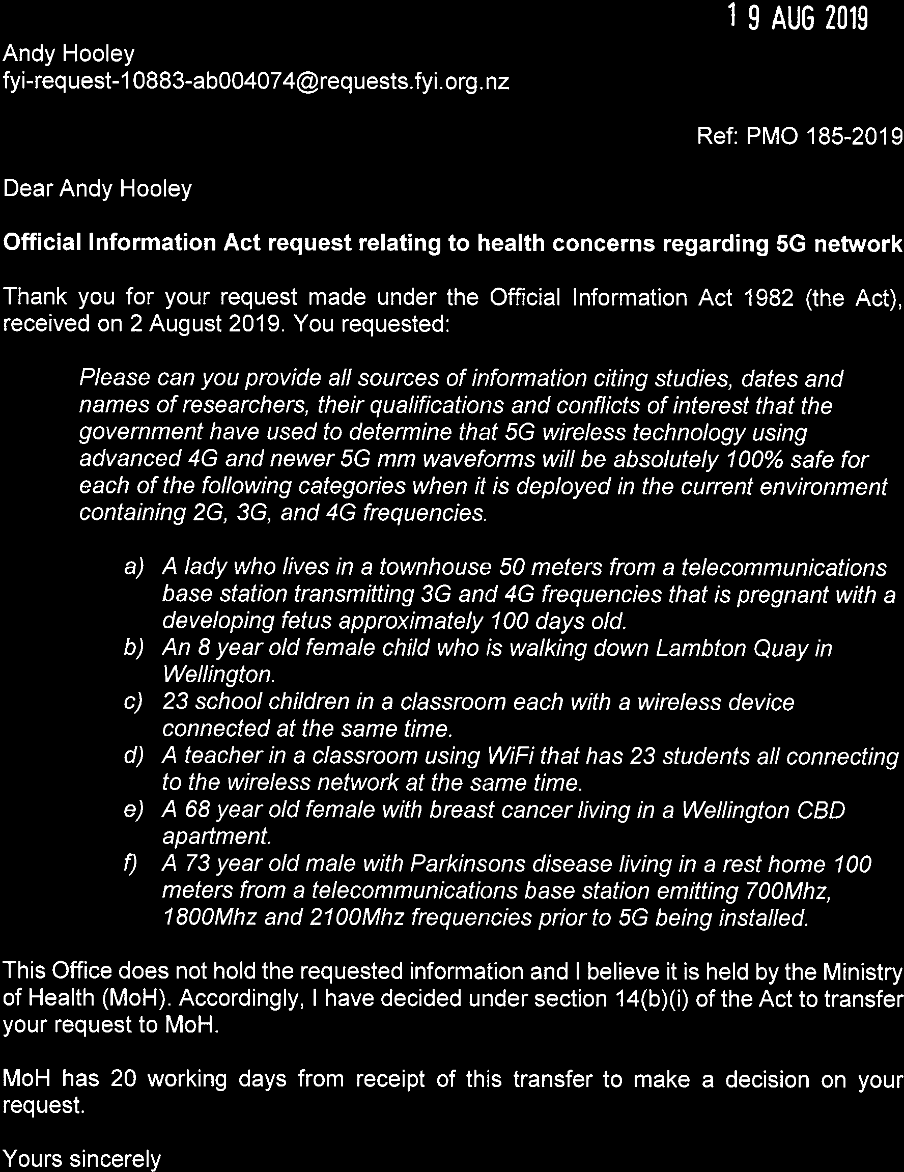 5G, Wireless Technologies and the health and safety of the population of New Zealand.