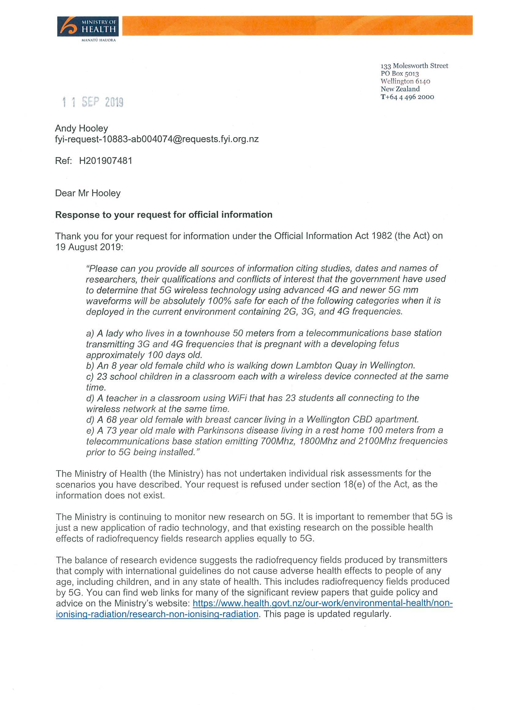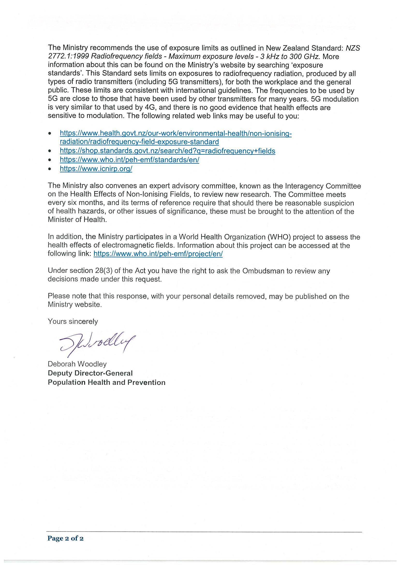 5G, Wireless Technologies and the health and safety of the population of New Zealand.
