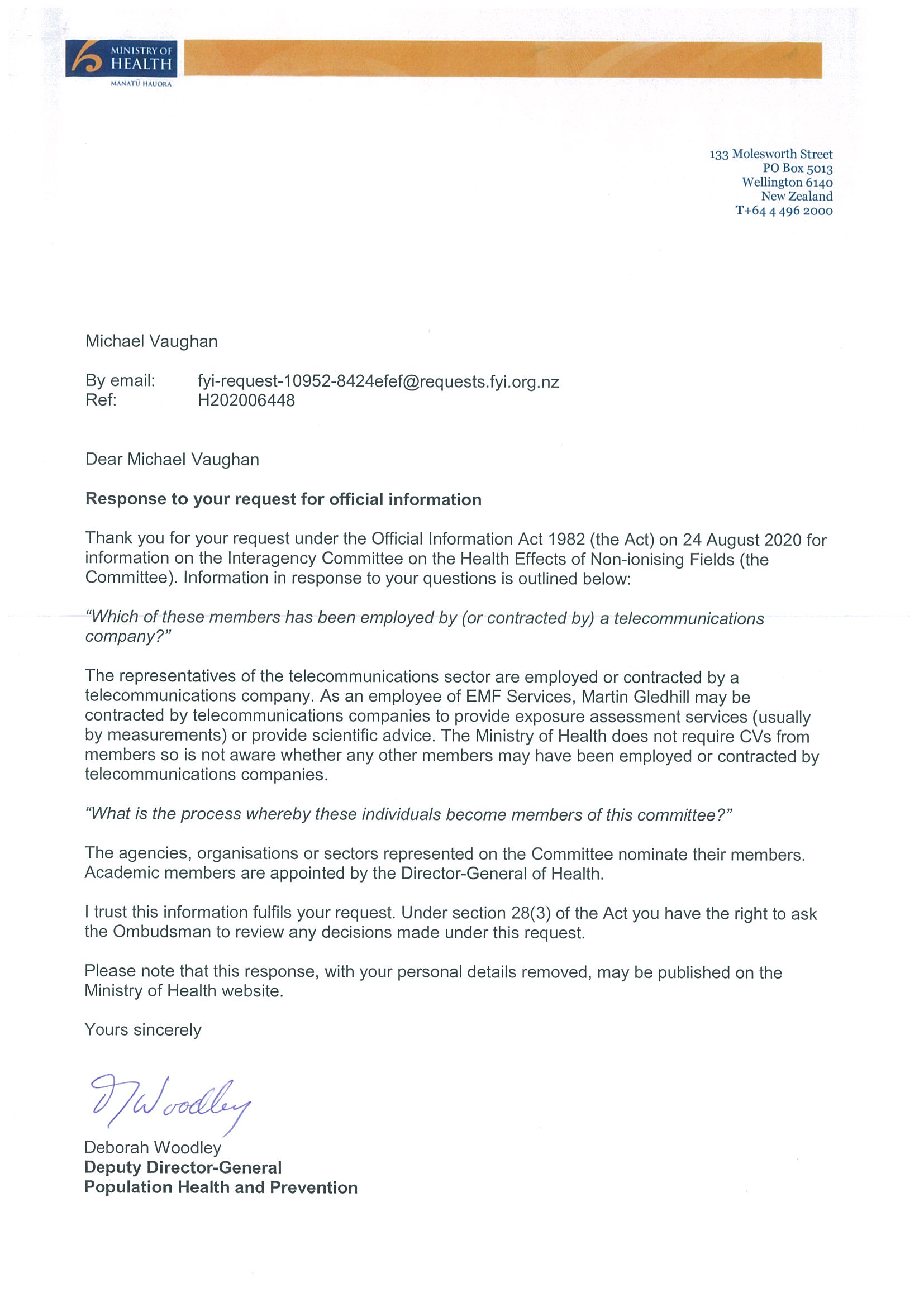 Advisory Committee members re Non-Ionising Radiation - connections with Telco. industry