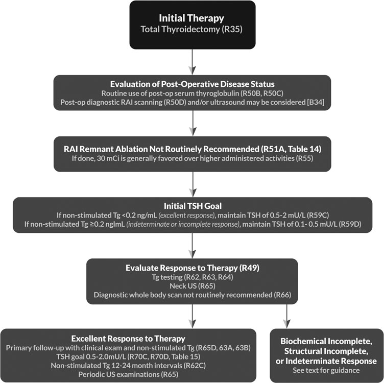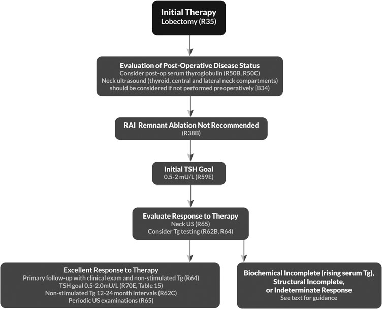 and thyrotropin suppression therapy using levothyroxine. Recommendations related to long-term management