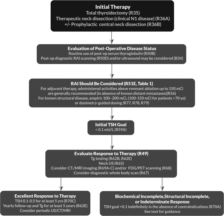 commendations regarding the initial management of thyroid cancer include those relating to screening for