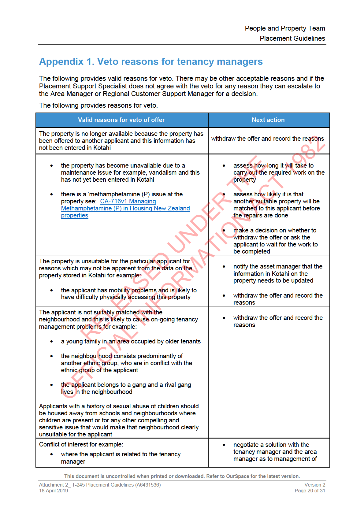 Appendix 1. Veto reasons for tenancy managers .................................... 20