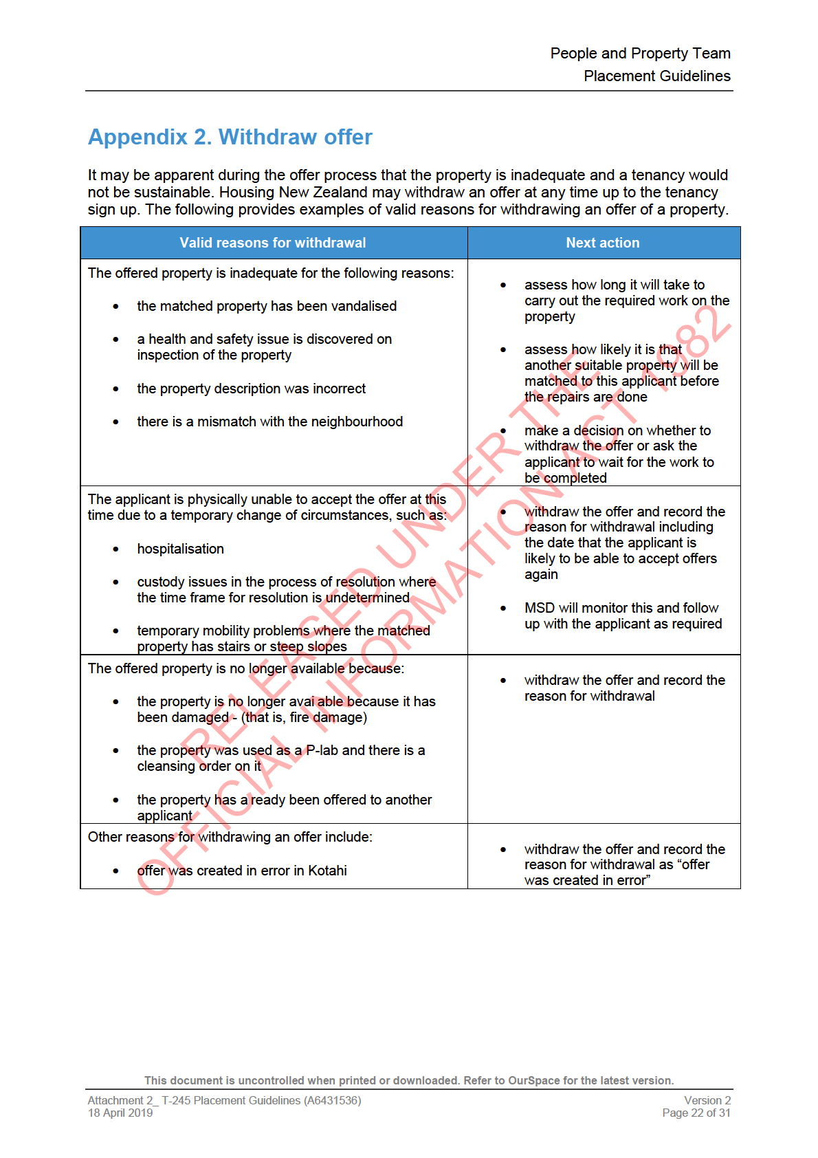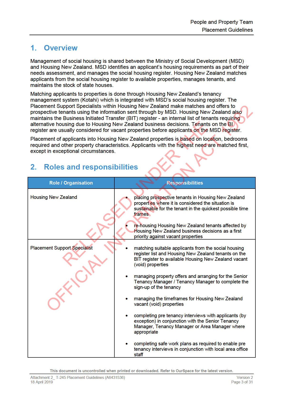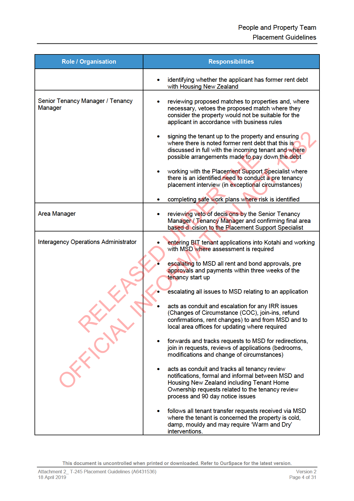 This document is uncontrolled when printed or downloaded. Refer to OurSpace for the latest version.