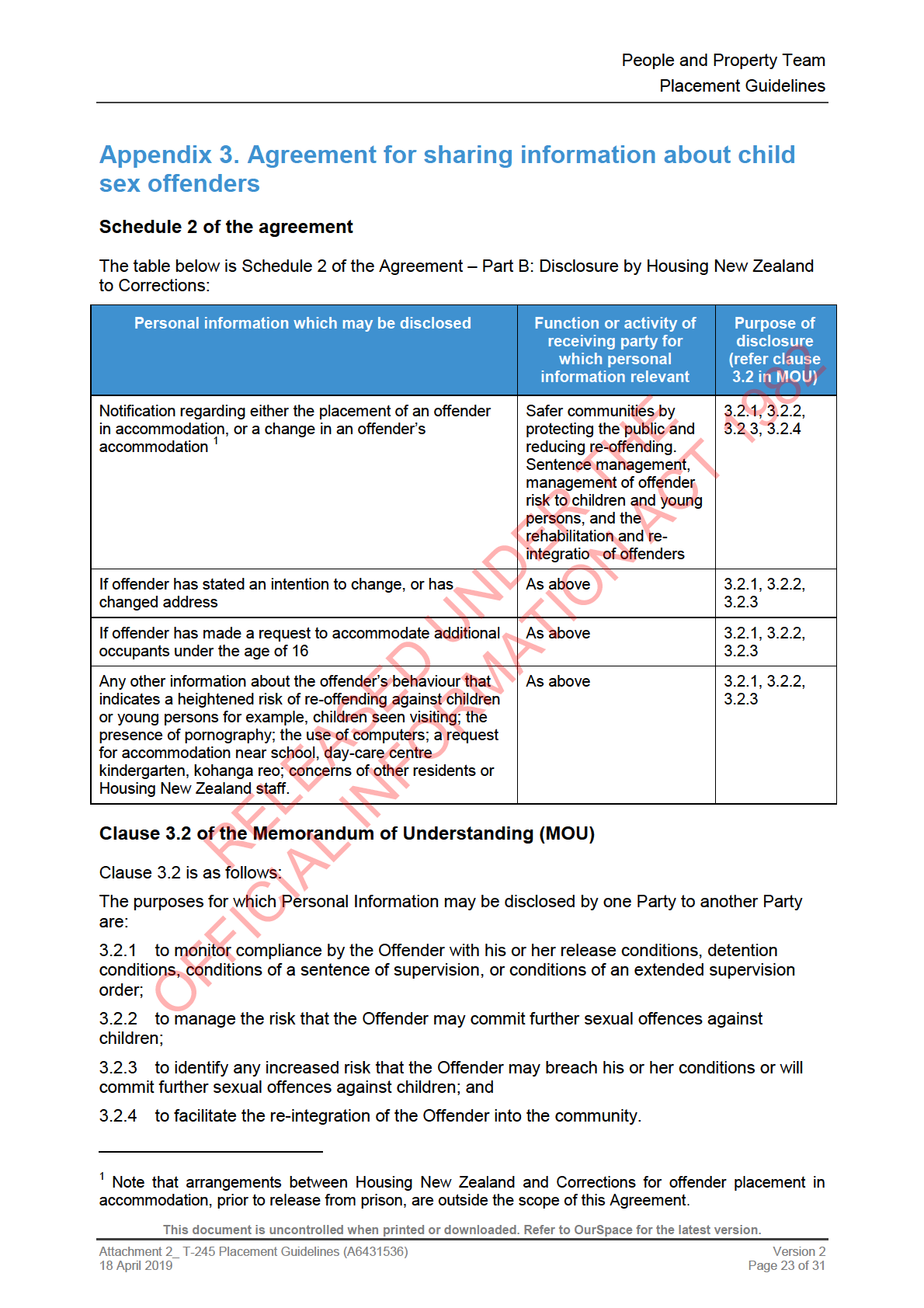 ‘Disclosure of information by Housing New Zealand to the Department of Corrections’.