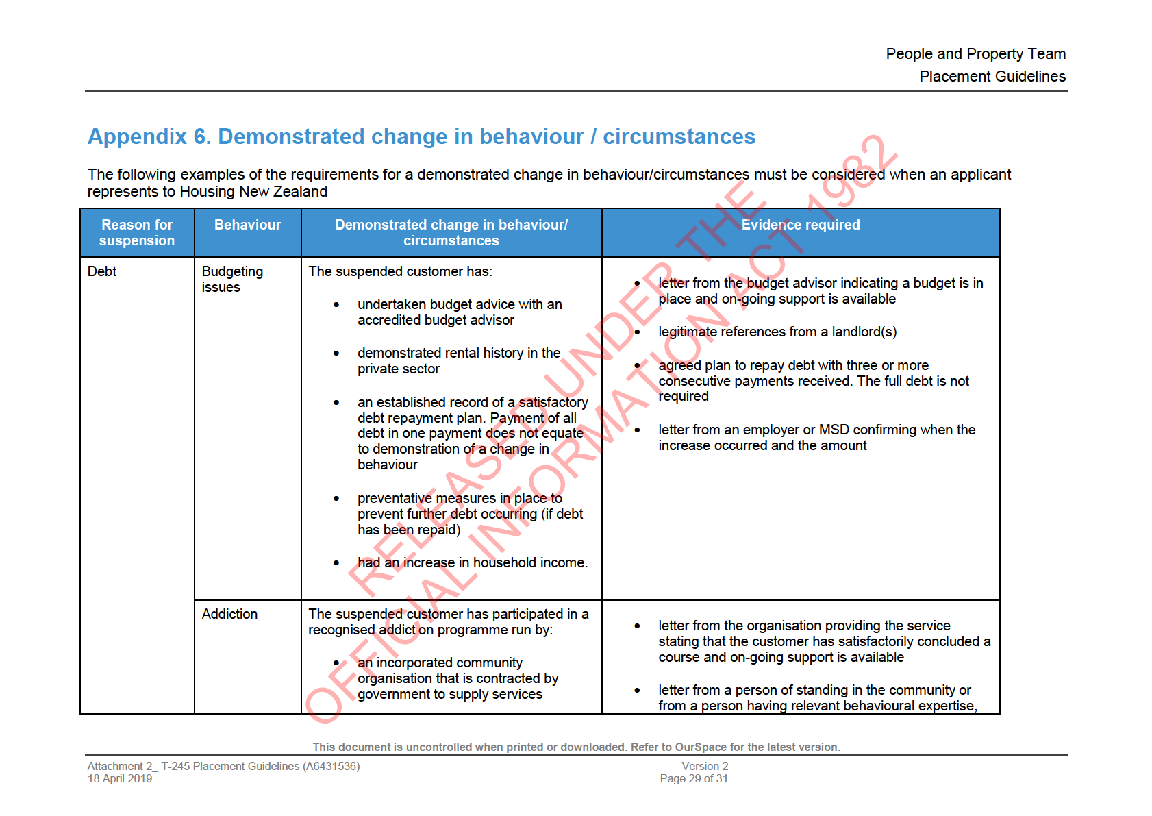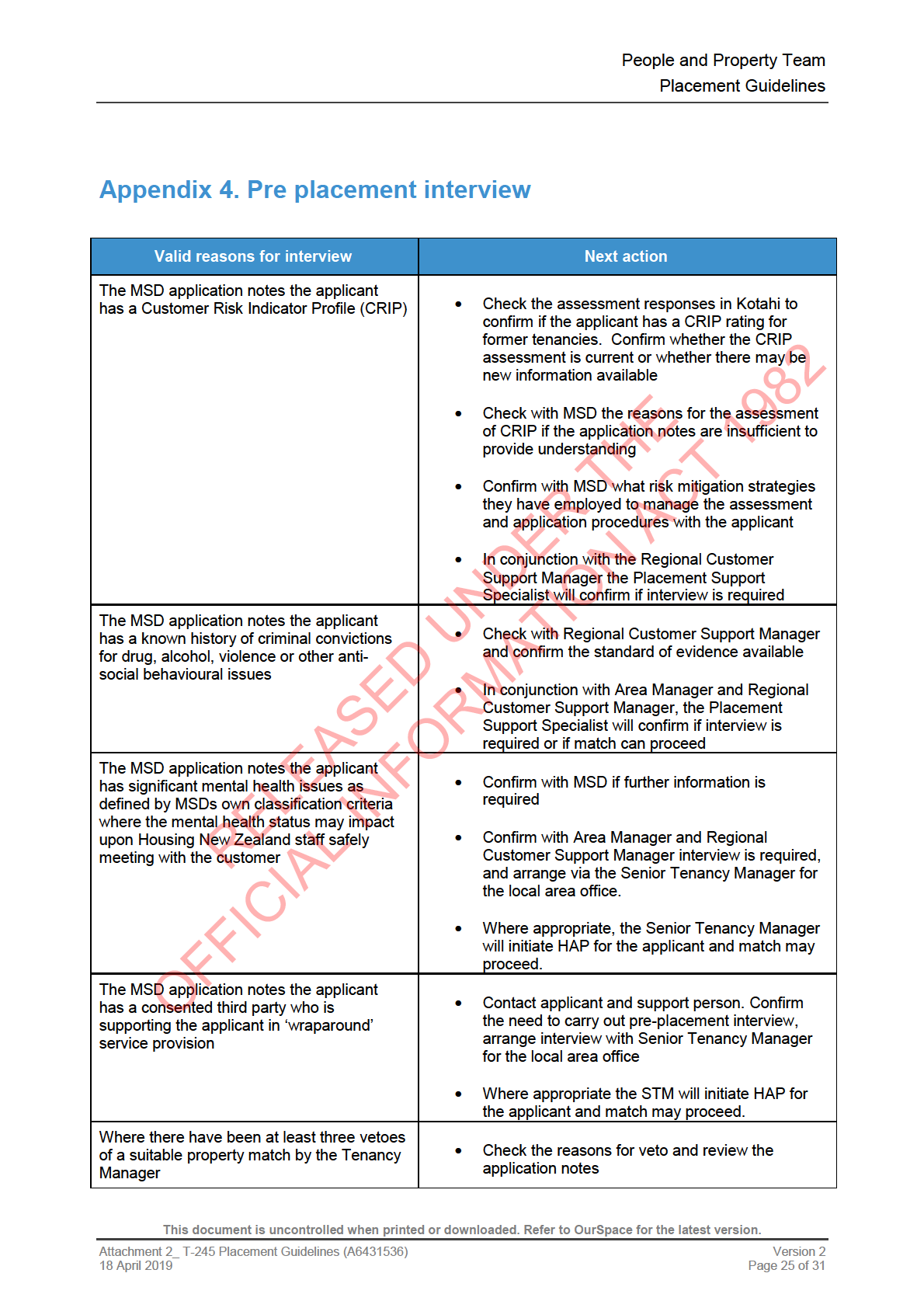 (SAS) criteria, it refers to Housing New Zealand’s placement criteria.