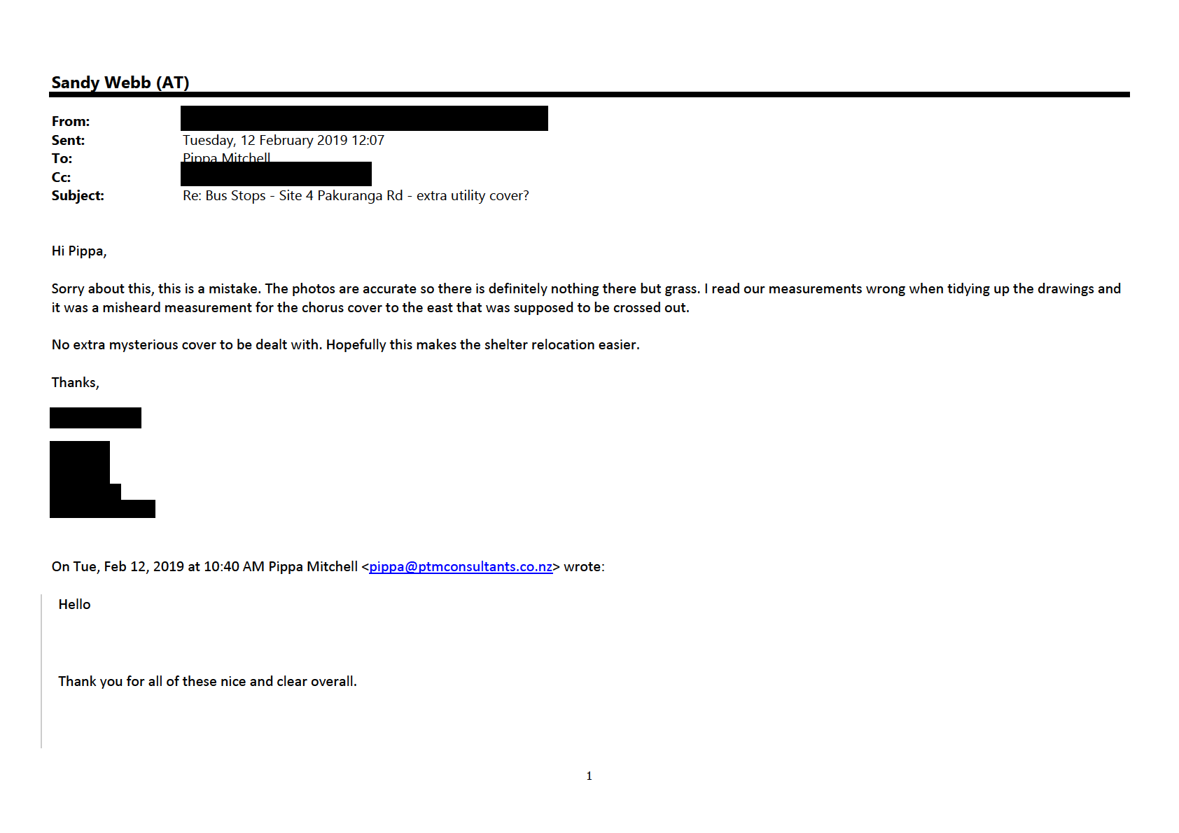 installed. The report will include the issues you have raised and how Auckland Transport has