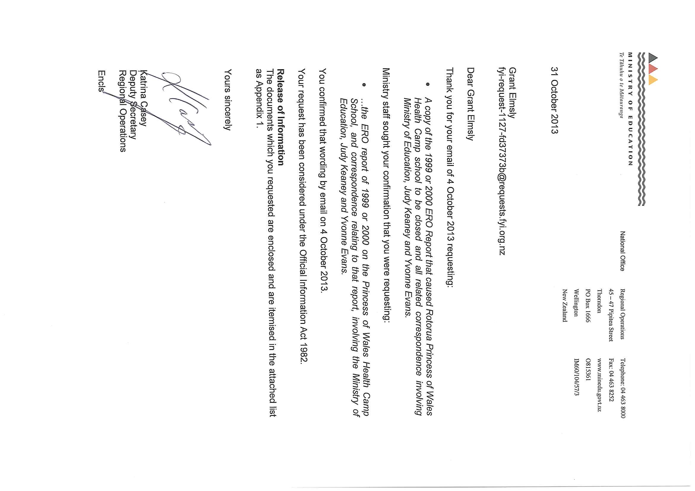 A copy of the 1999 or 2000 ERO report that caused Rotorua princess of wales Health camp School to be closed