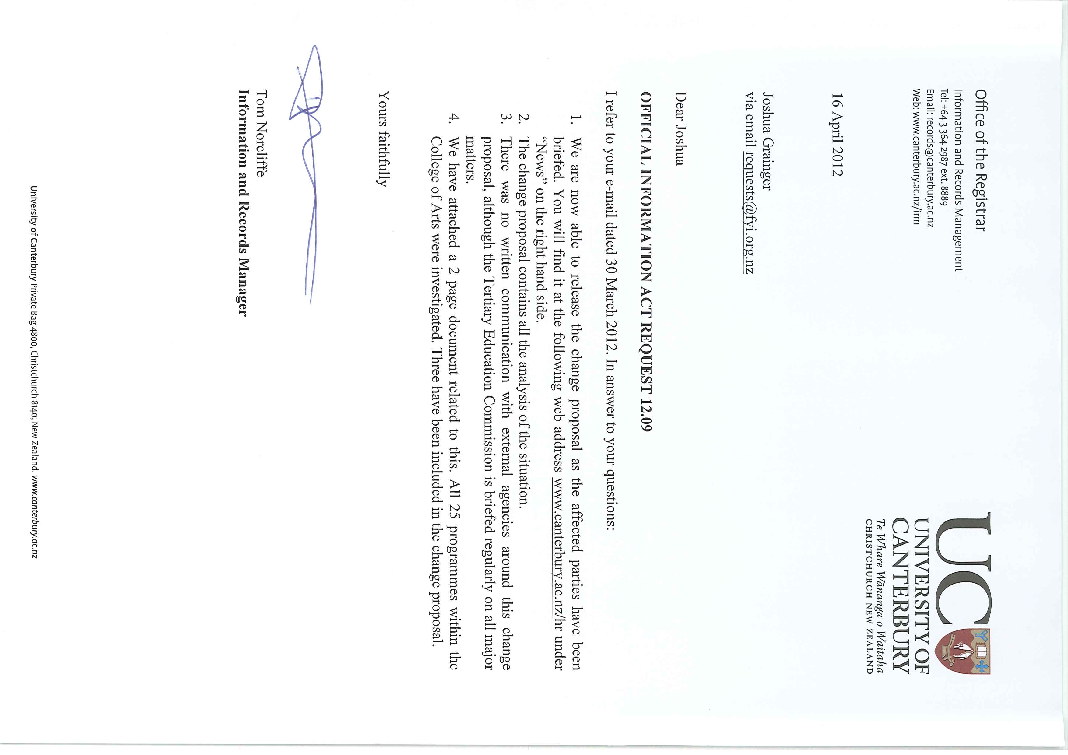 The College of Arts released a change proposal on 26 March 2012 proposing the
