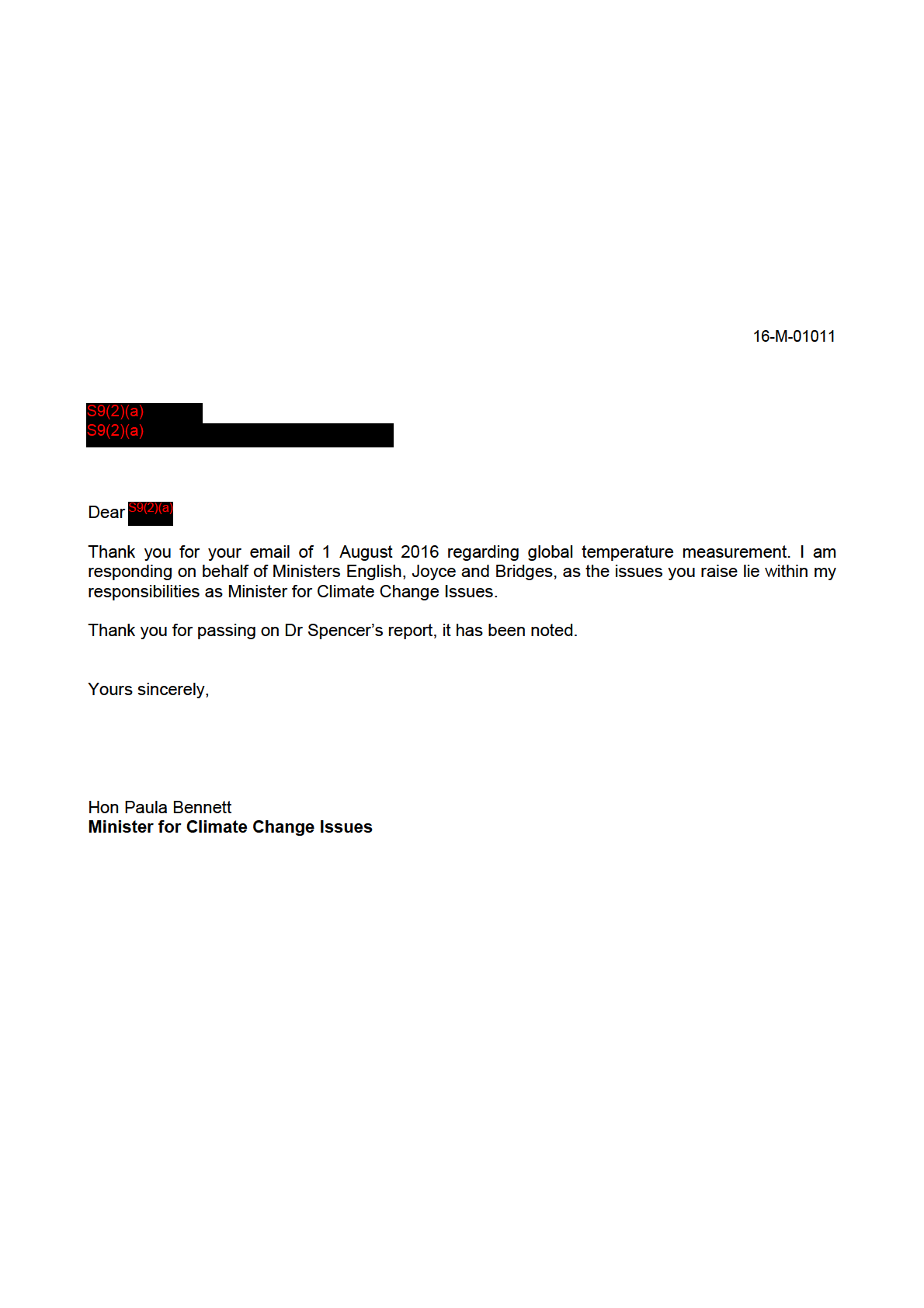 Dear Minister for Climate Change,Paula Bennett Since my last e,mails in which i have