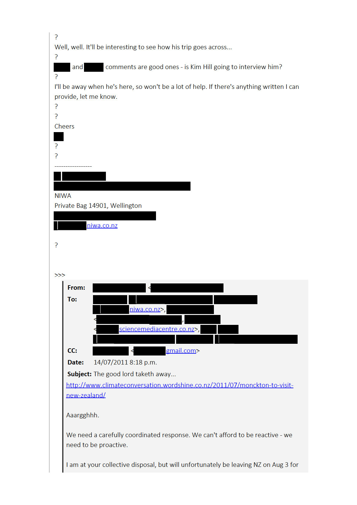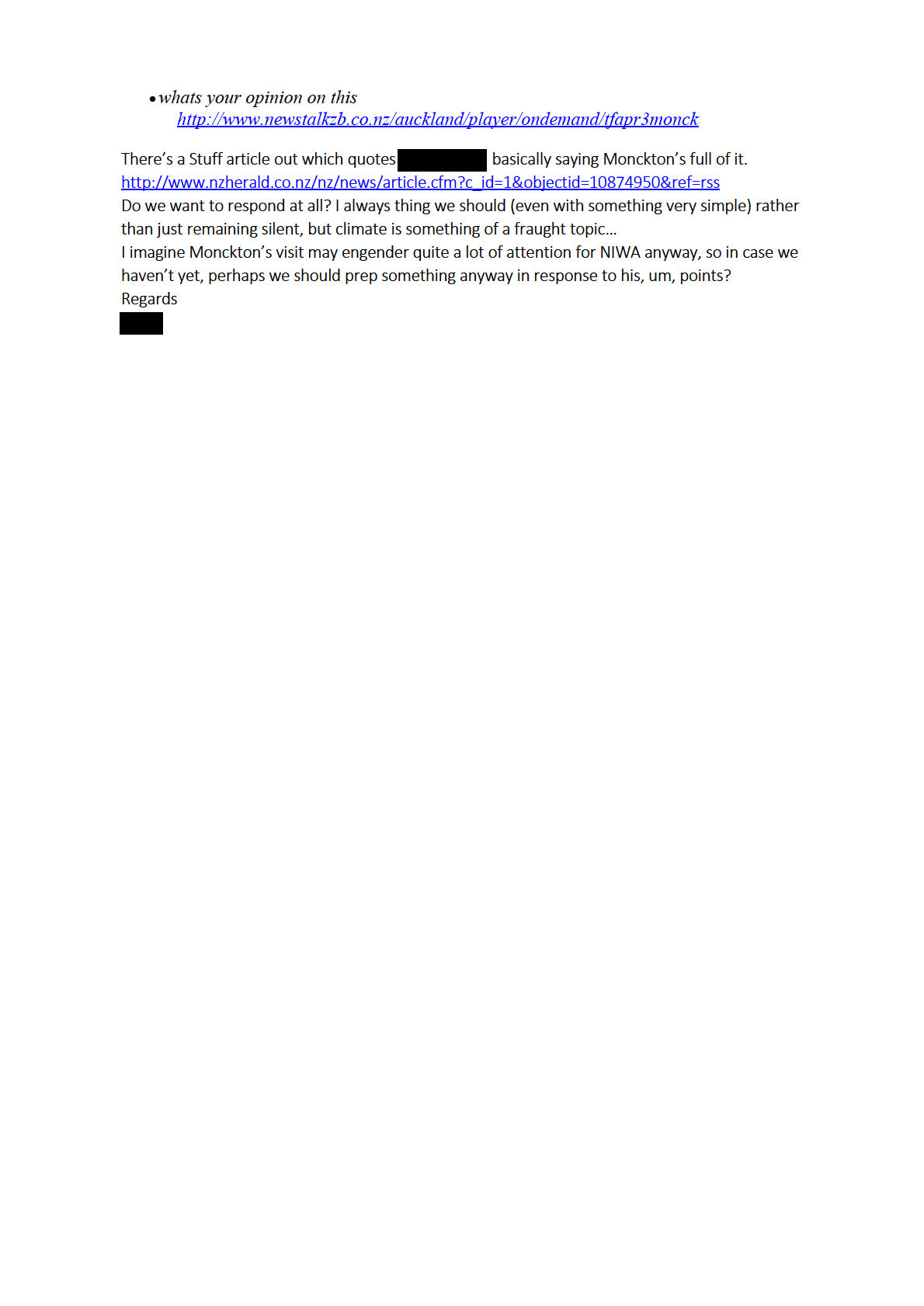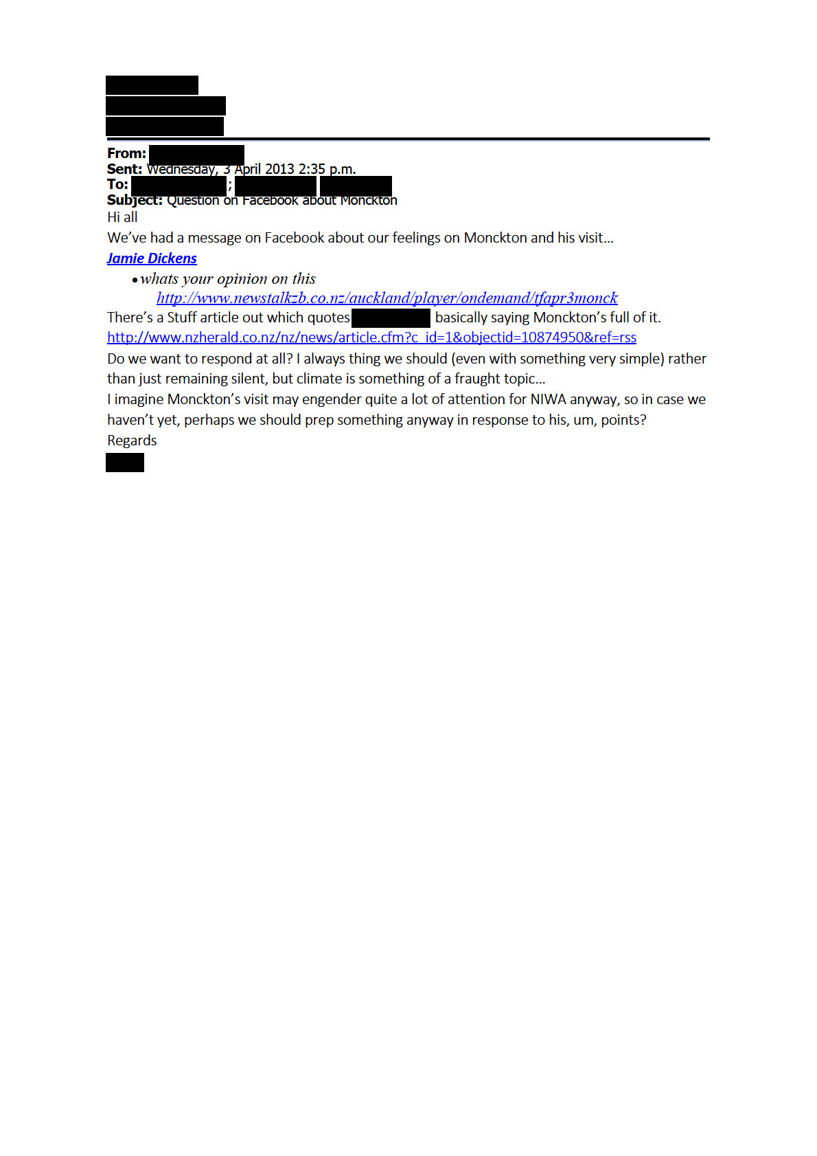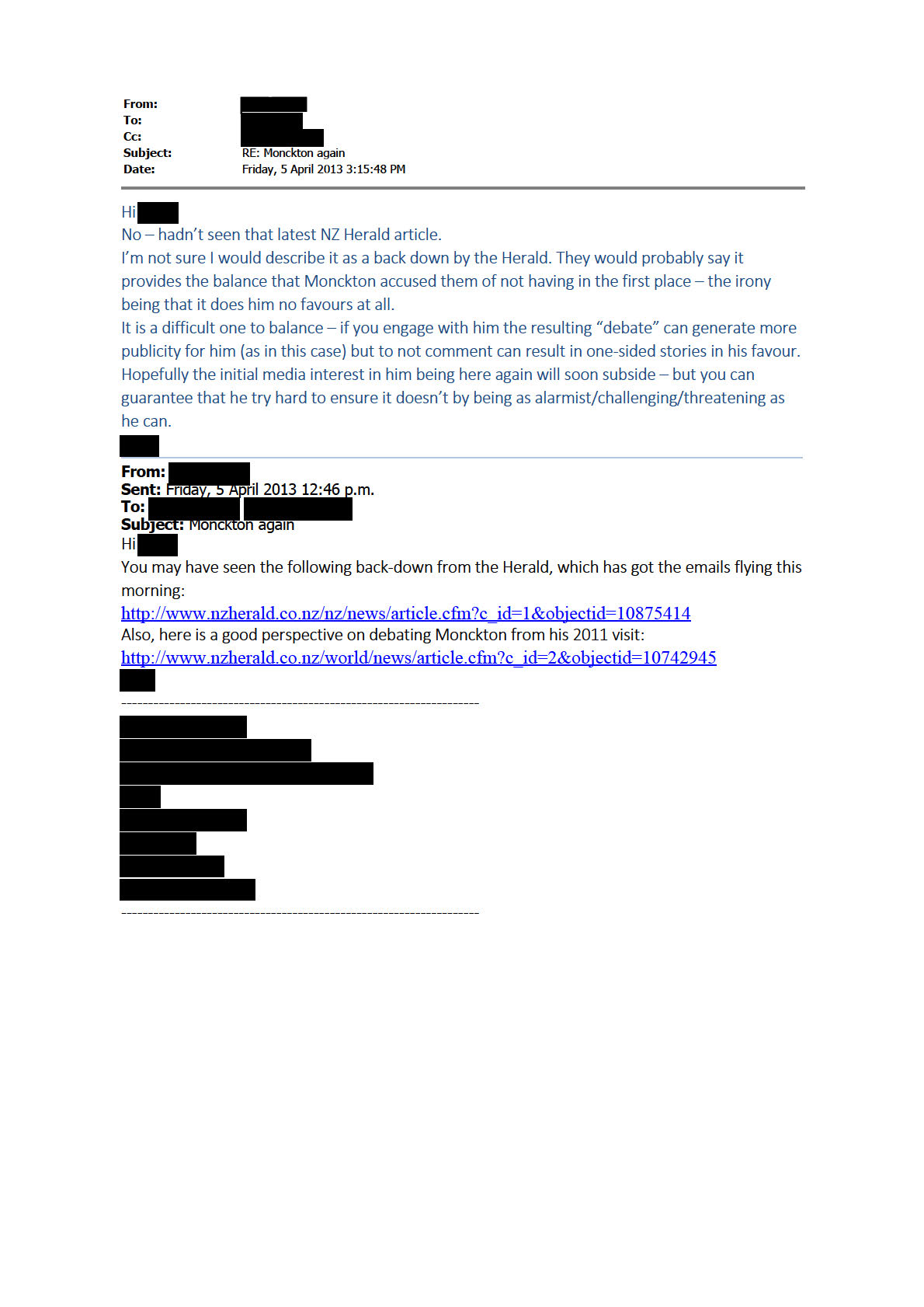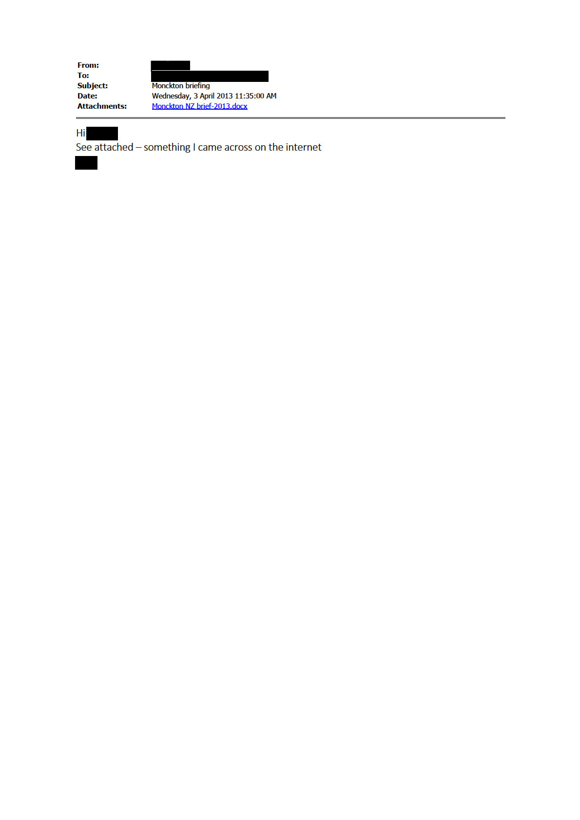 Moncktons' visit / talks. If you do receive such an enquiry, please refer the caller (or email) through to