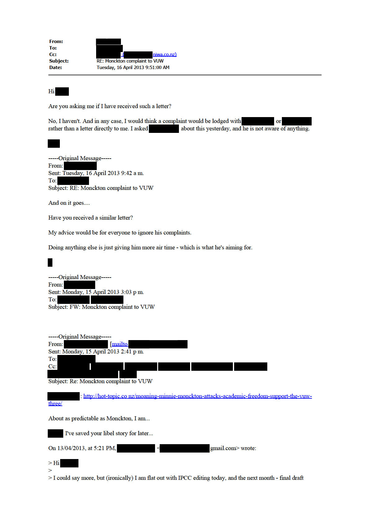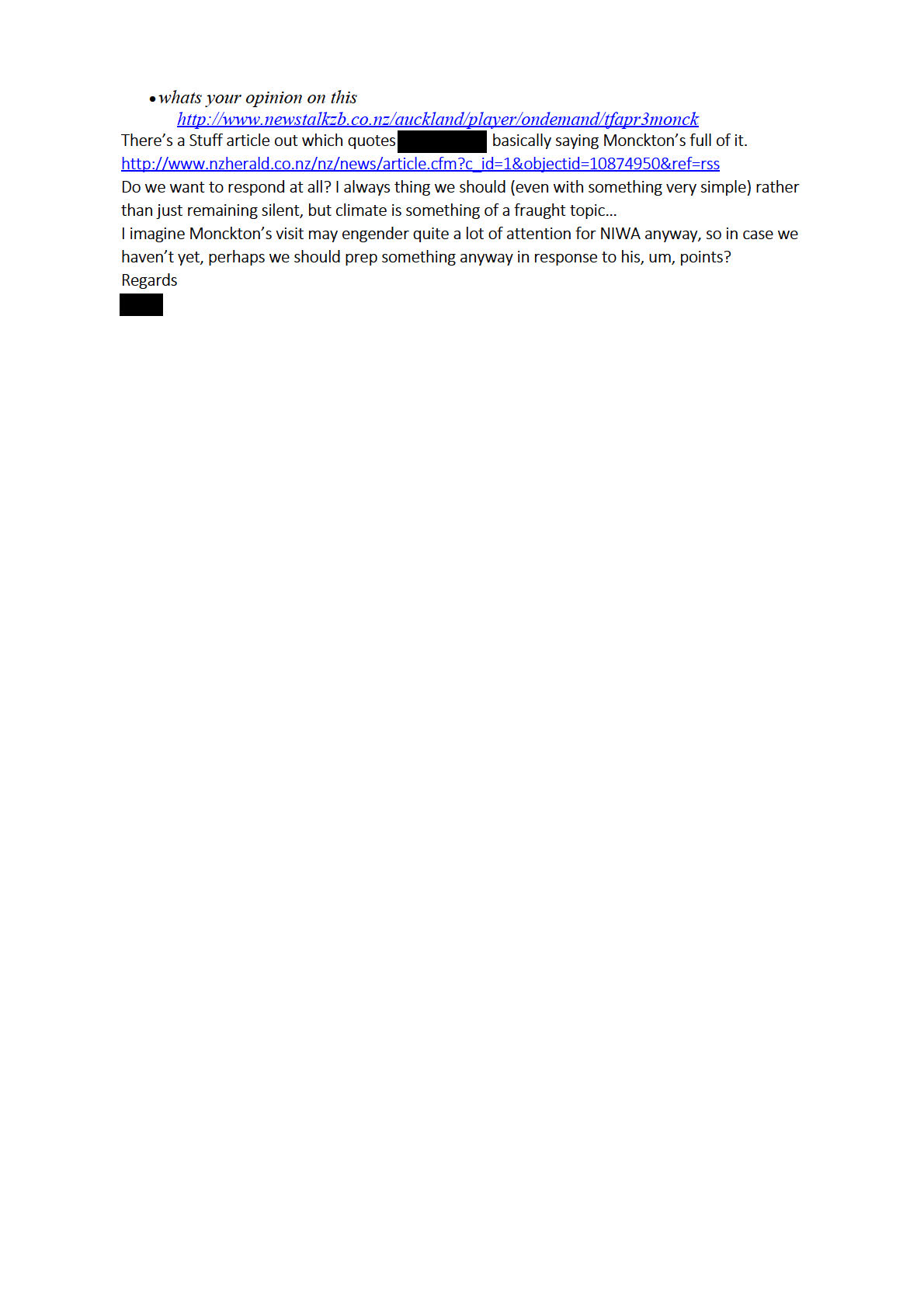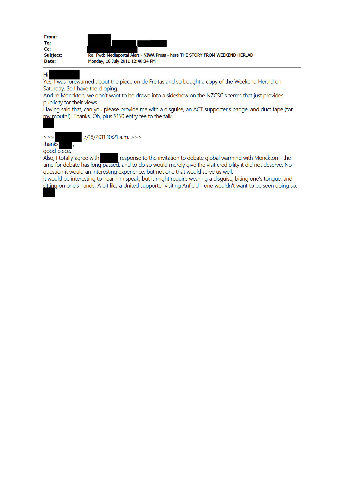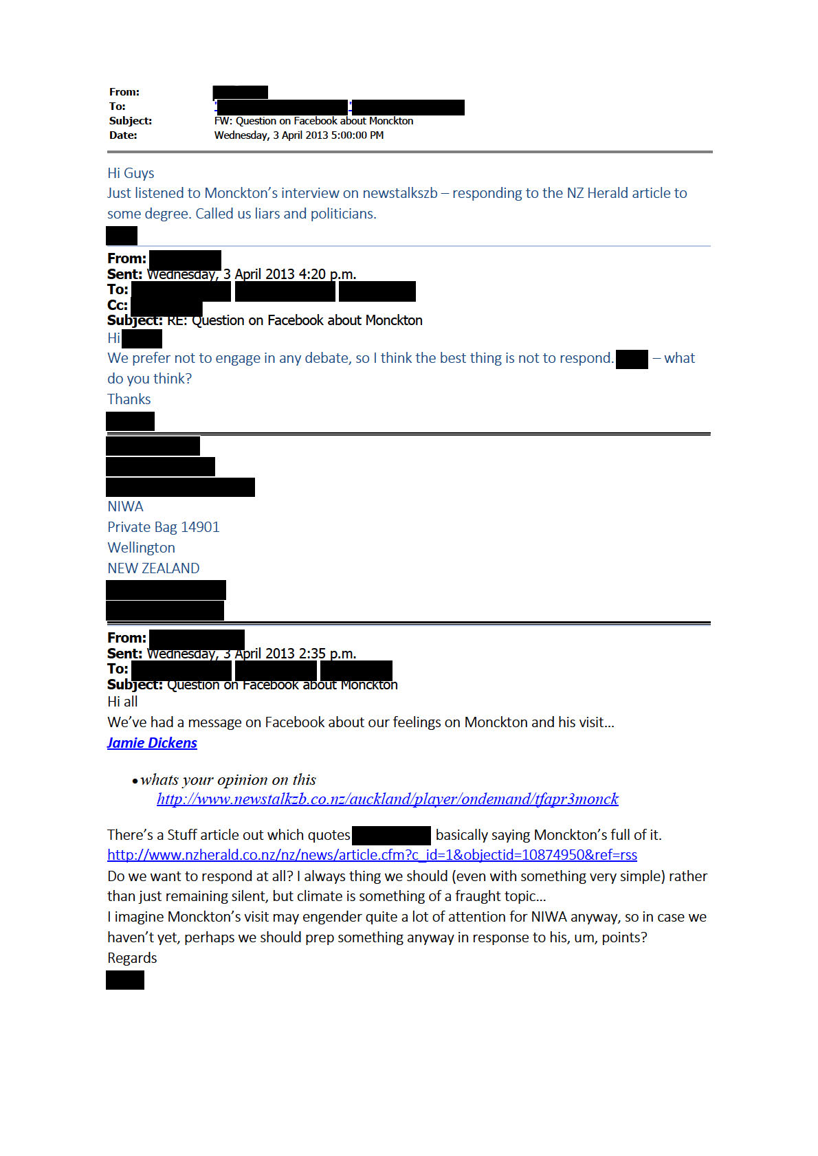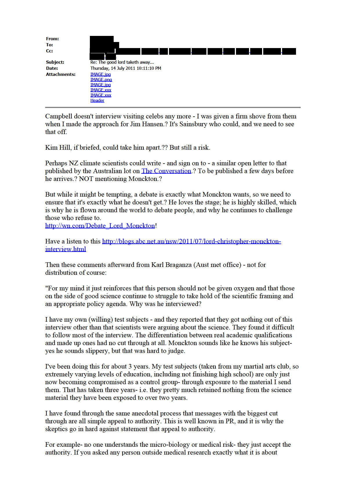 Moncktons' visit / talks. If you do receive such an enquiry, please refer the caller (or email) through to