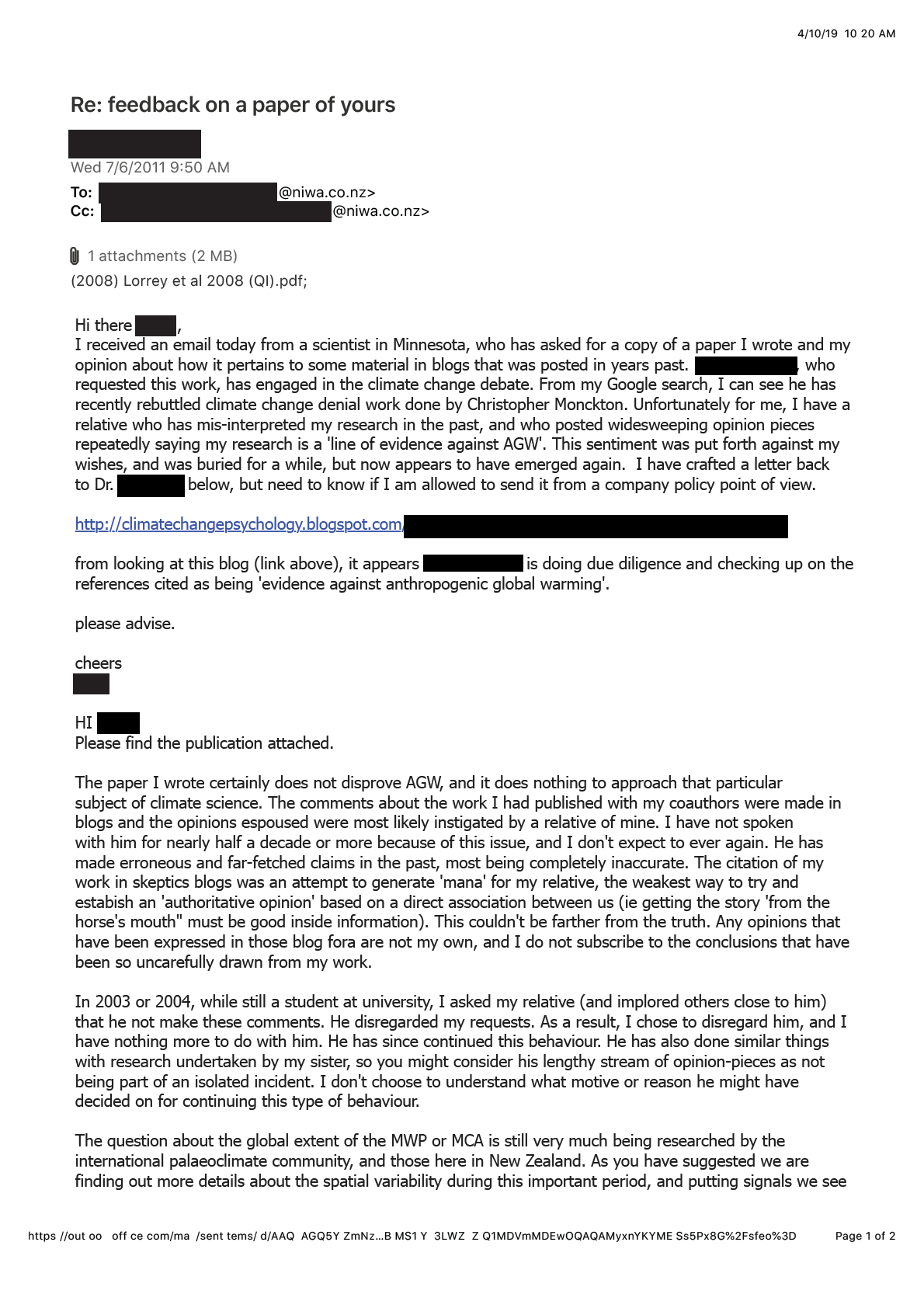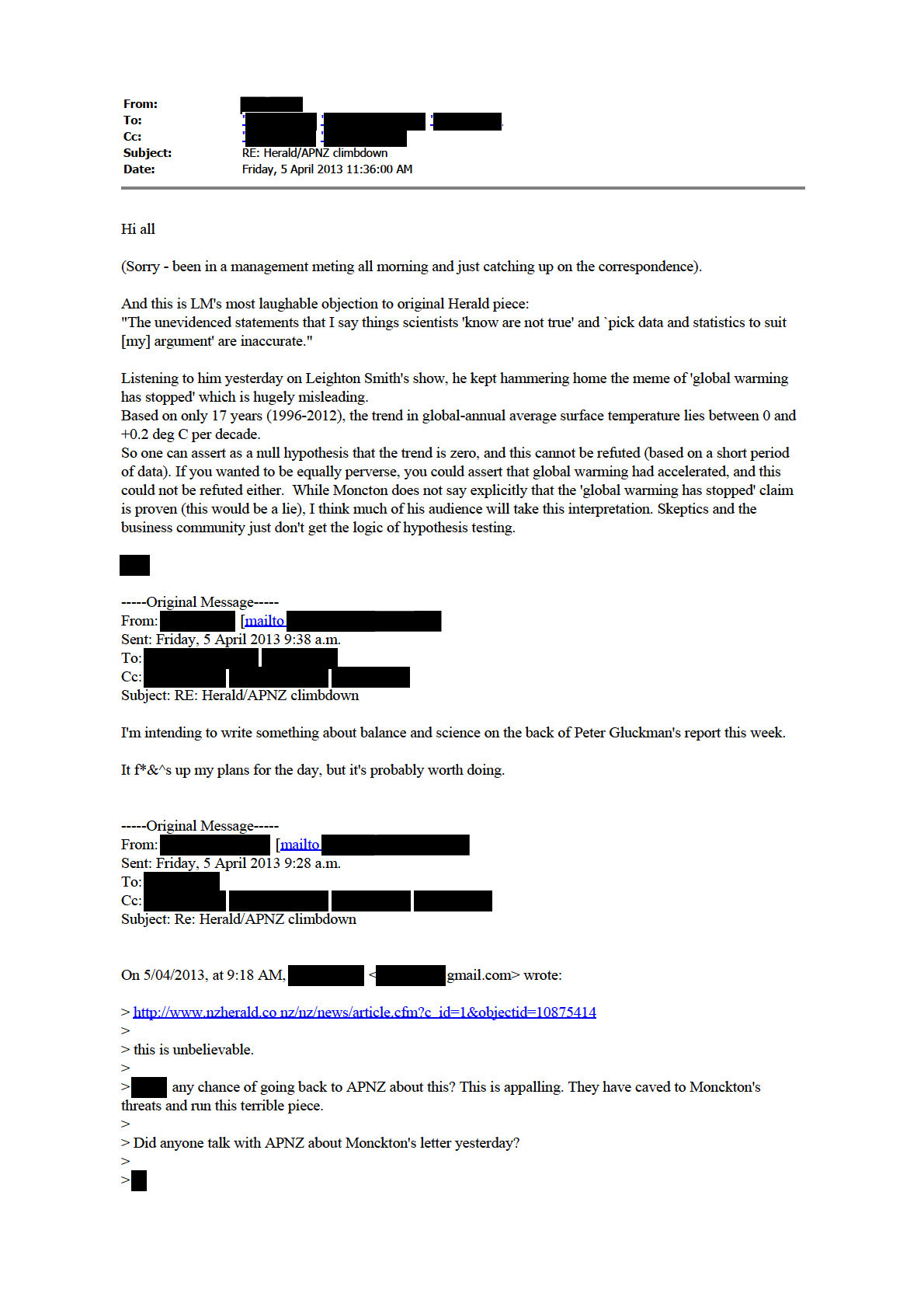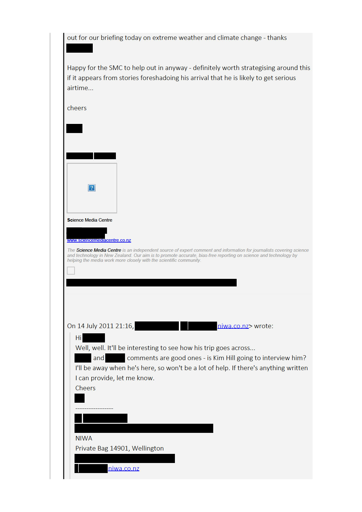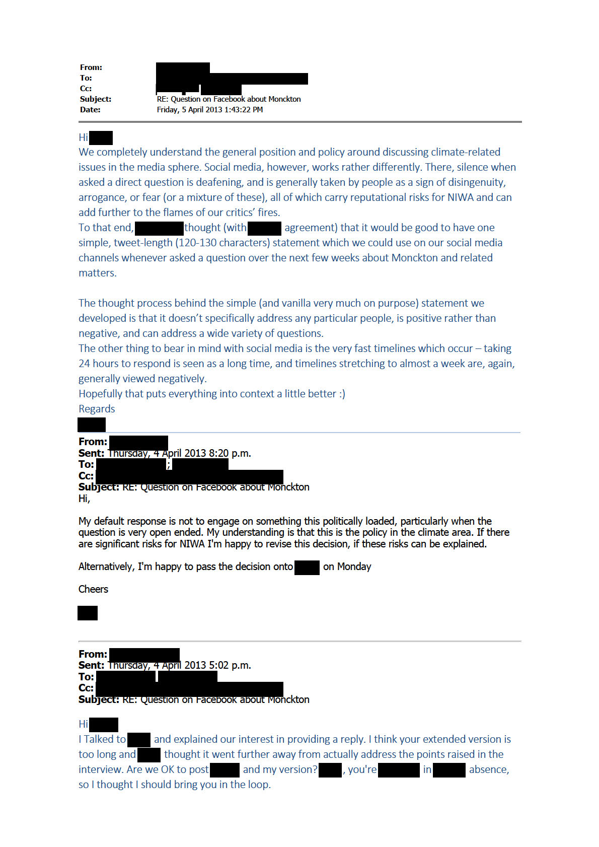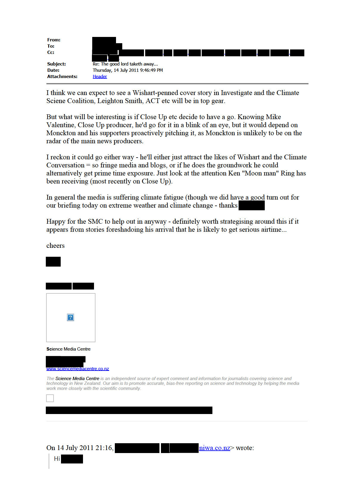 Moncktons' visit / talks. If you do receive such an enquiry, please refer the caller (or email) through to