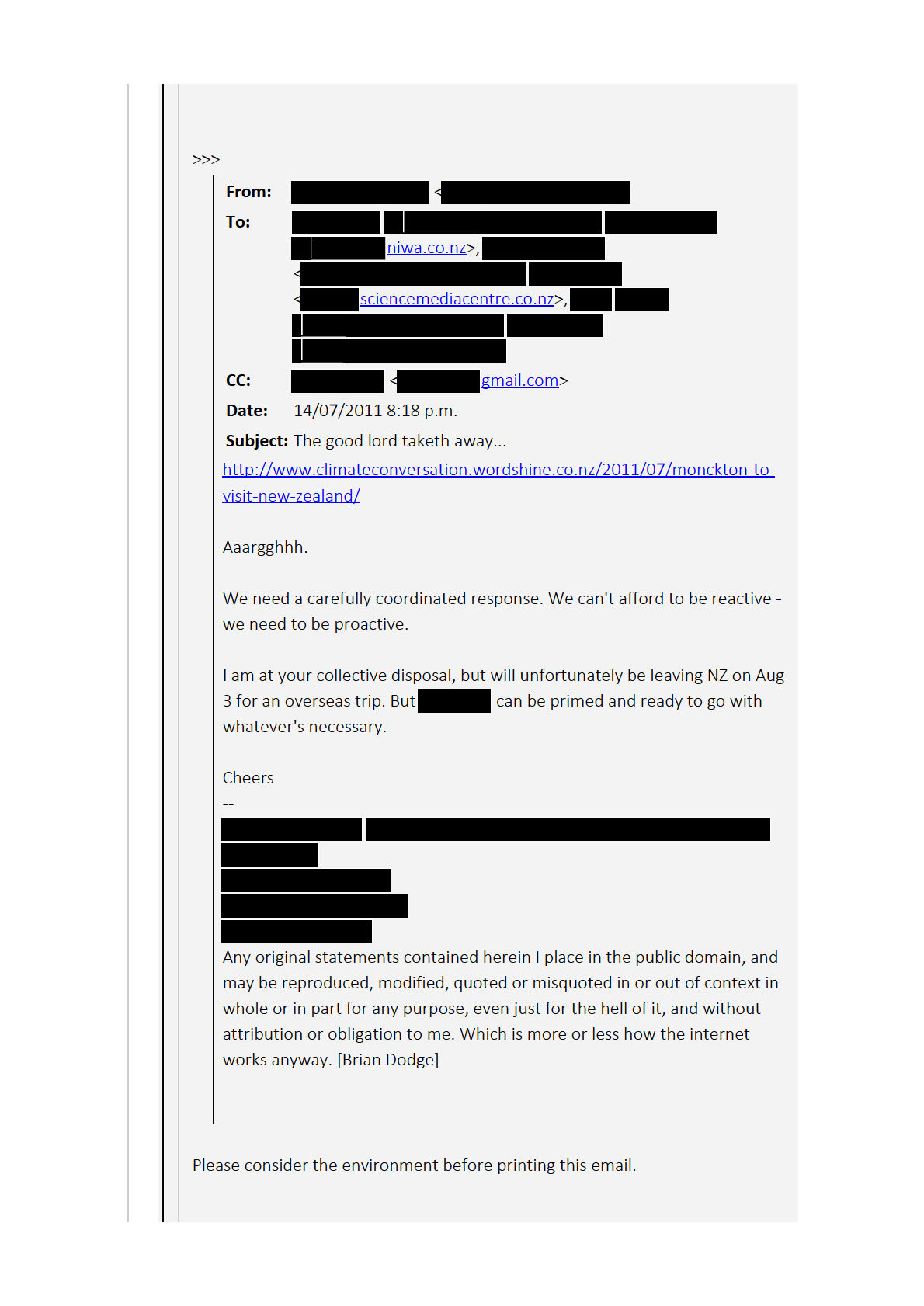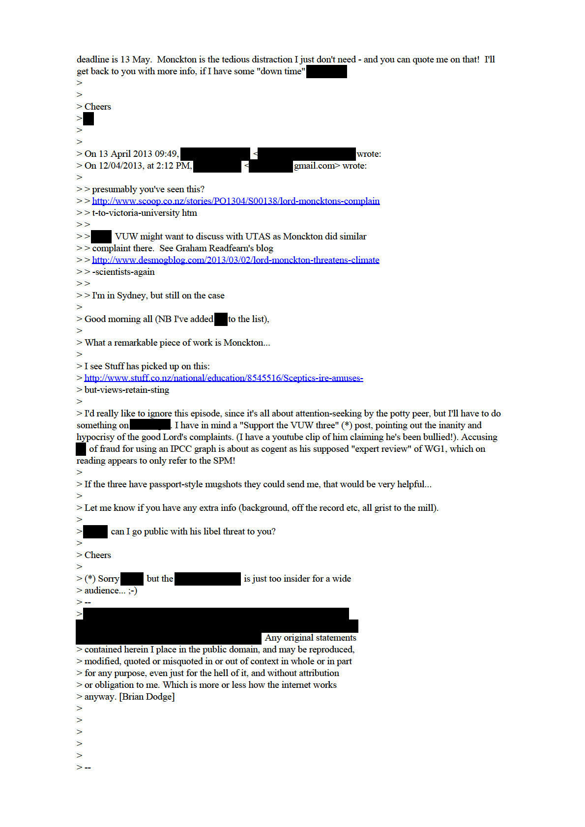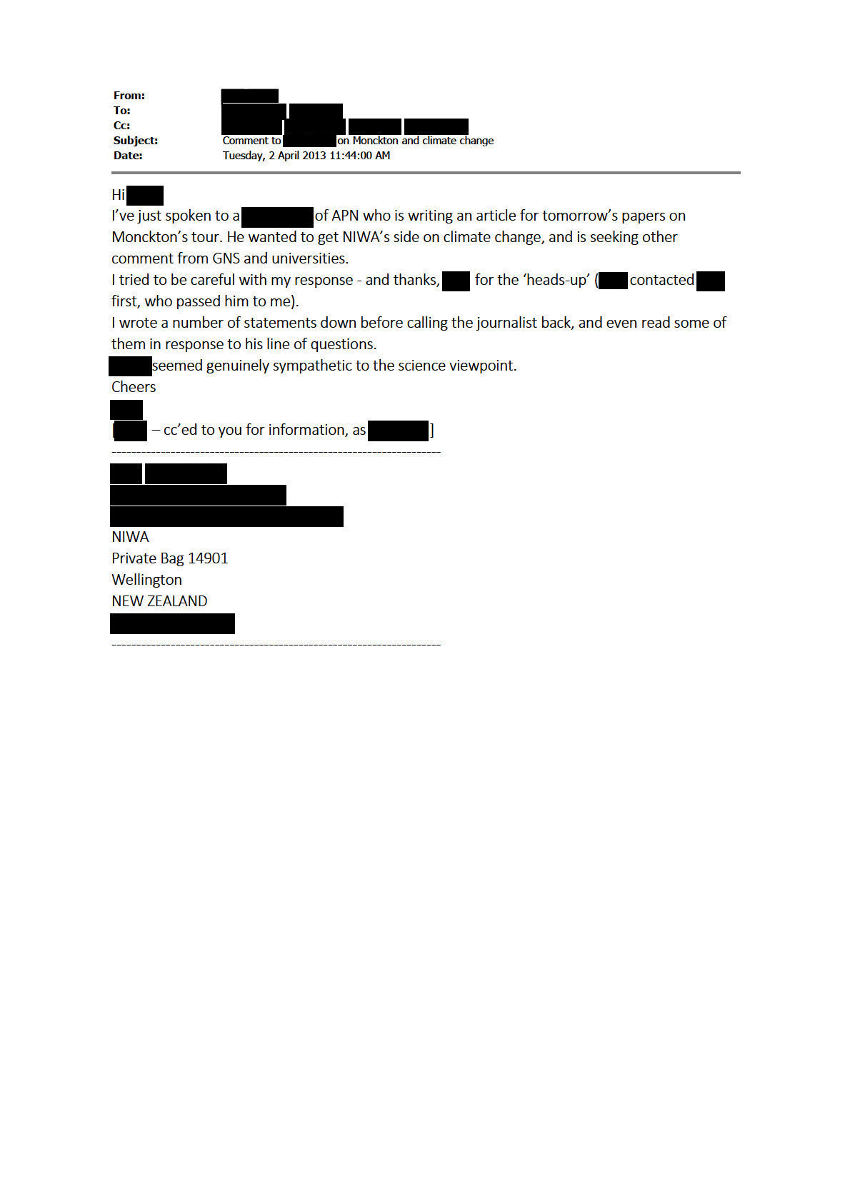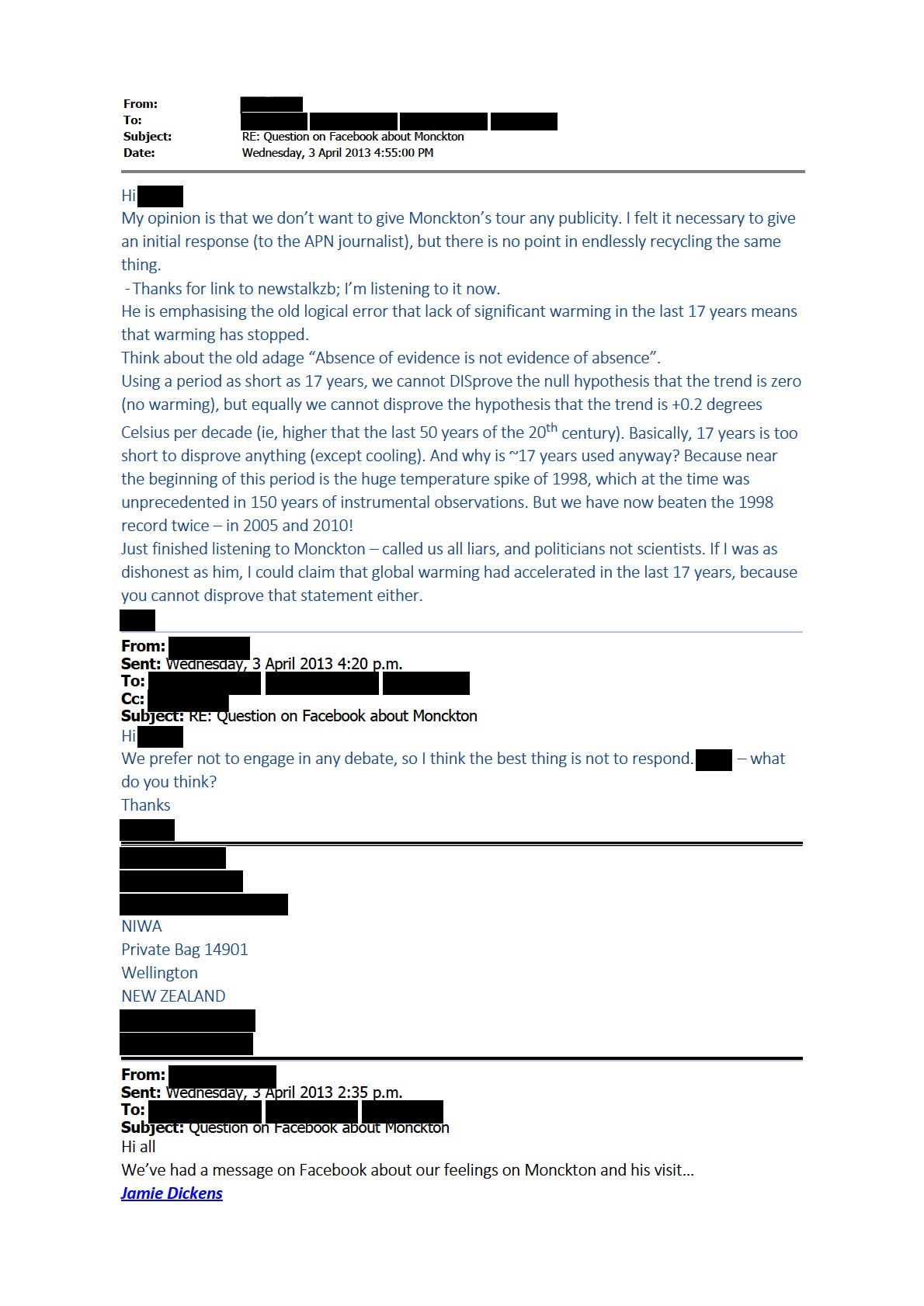 with enquiries (Lord Monckton's NZ tour lasts through to the end of April). What we do NOT want to do
