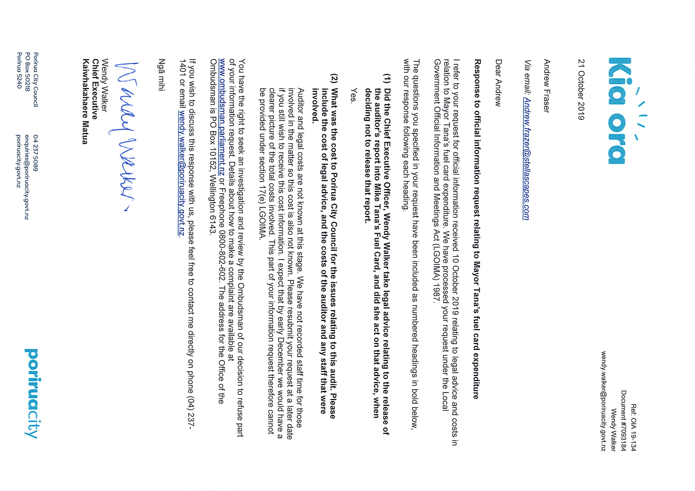 "Auditors Report into use of fuel cards of Mayor Tana"