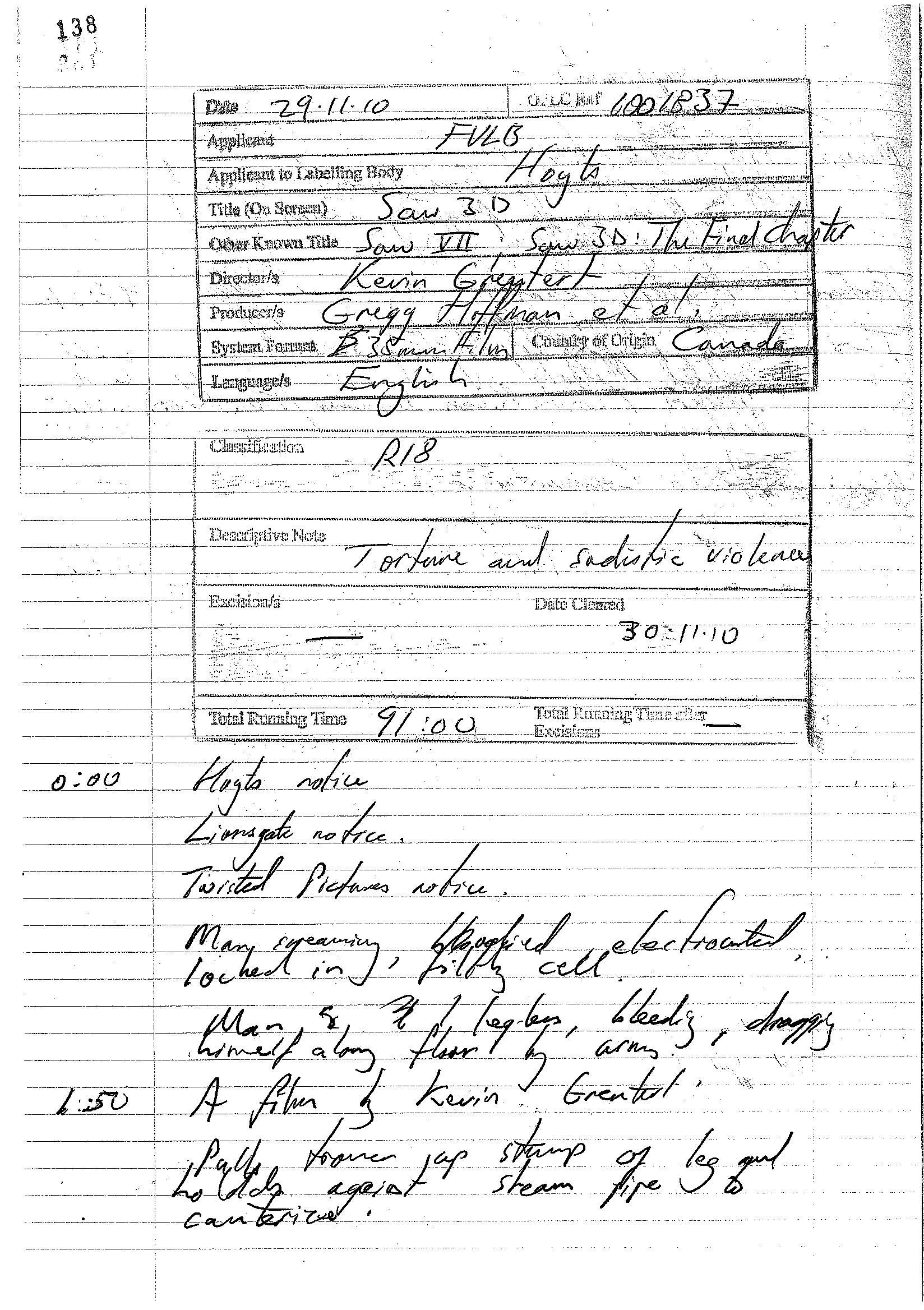 Saw 3D, Hostel Part II, Charlie Says, Piranha 3DD, Orphan, Final Destination 5, Splice, Cabin In The Woods, Call of Duty: Modern Warfare, Tom Clancy's Ghost Recon Breakpoint