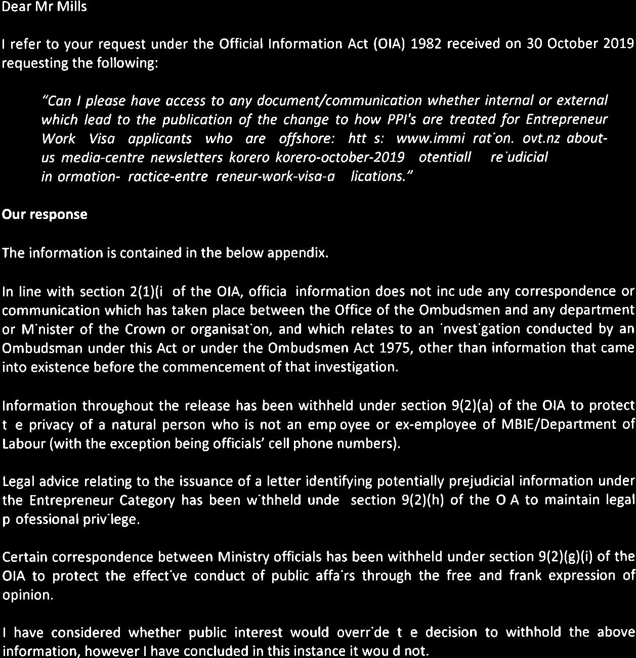 Documents/Communications related to the change of interpretation of E7.15.5 of the Immigration New Zealand Operational Manual