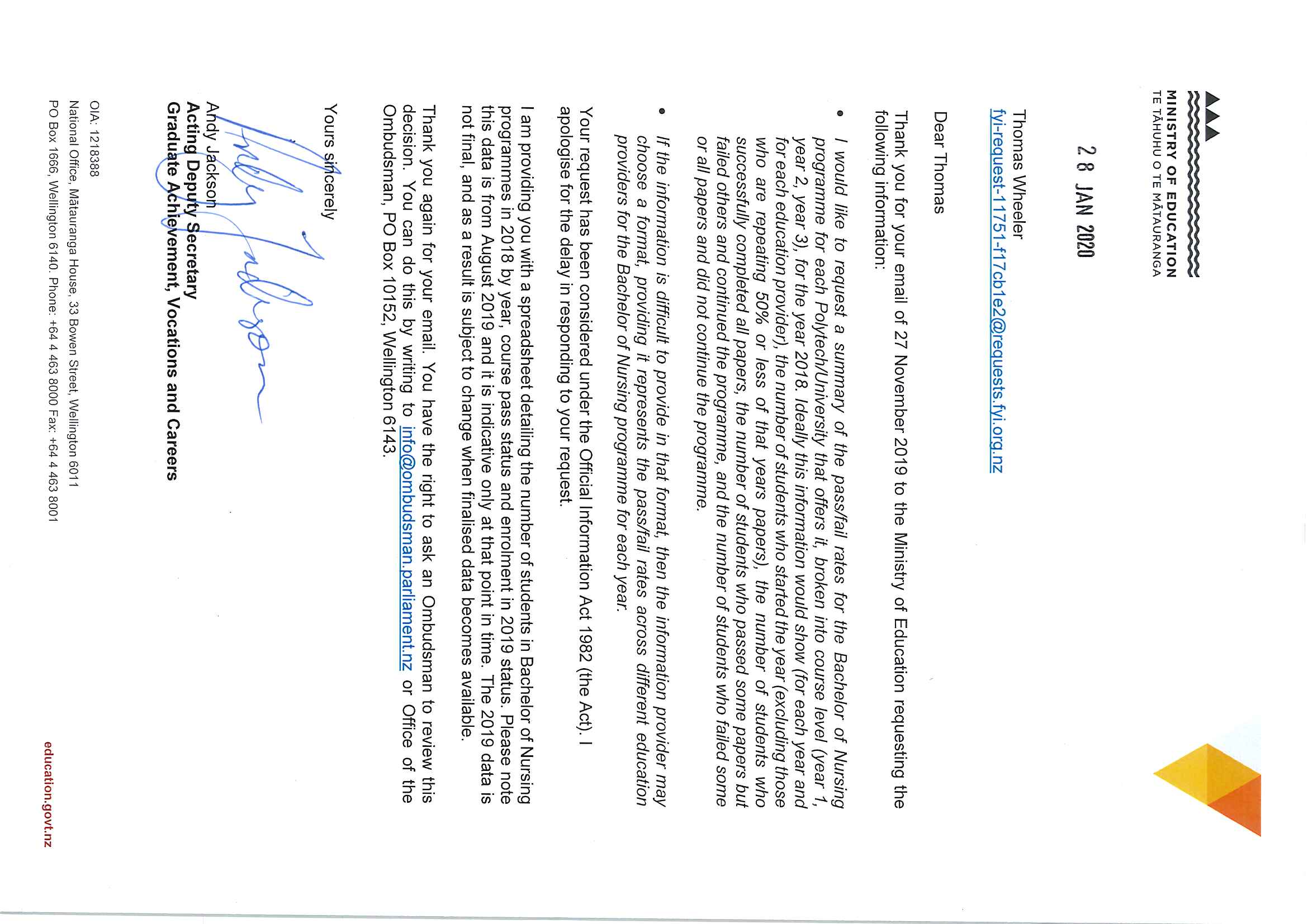 Summary of pass/fail rates for Bachelor of Nursing programme providers