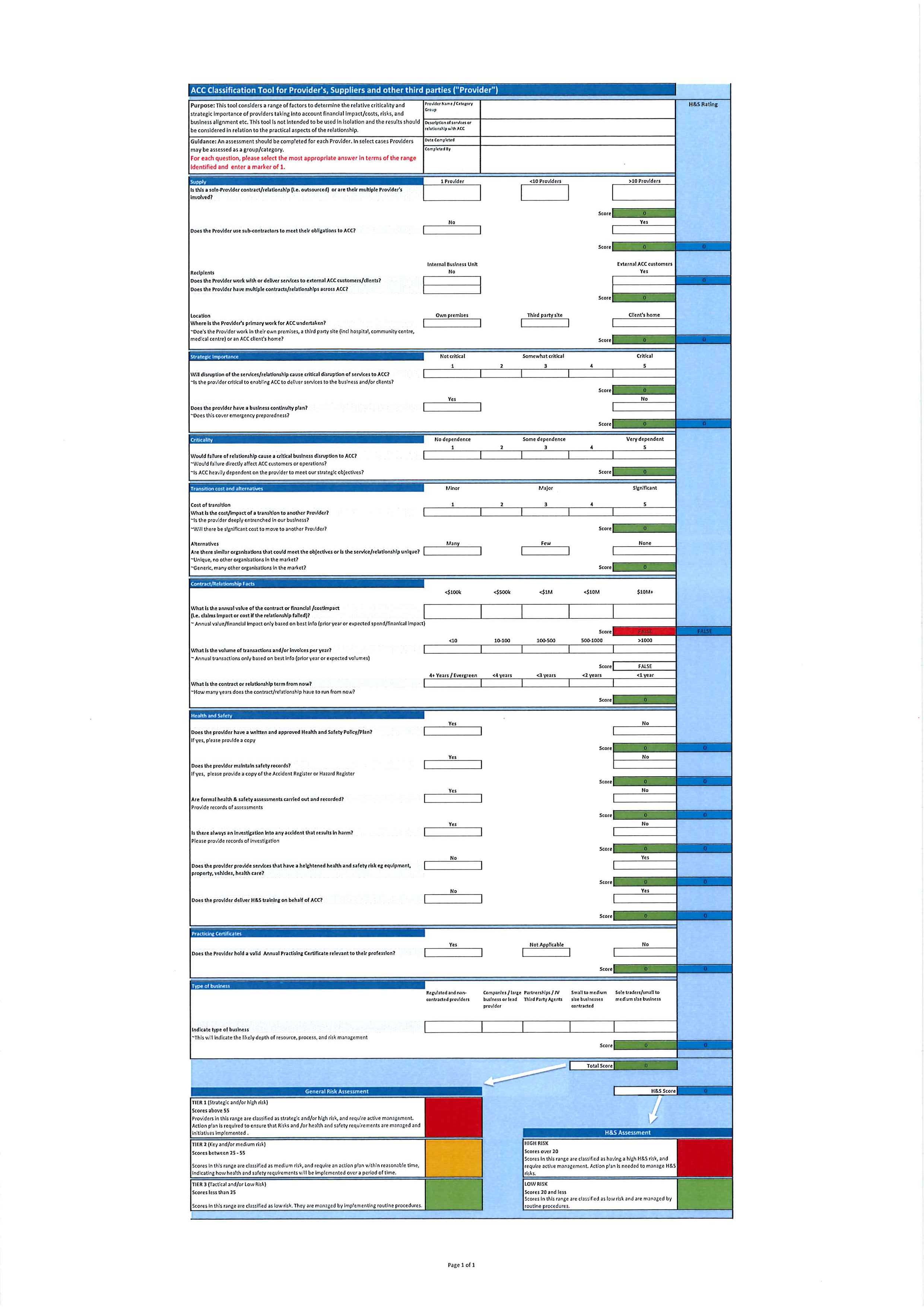 ACC’s Classification Tool for Providers, Suppliers and Third parties