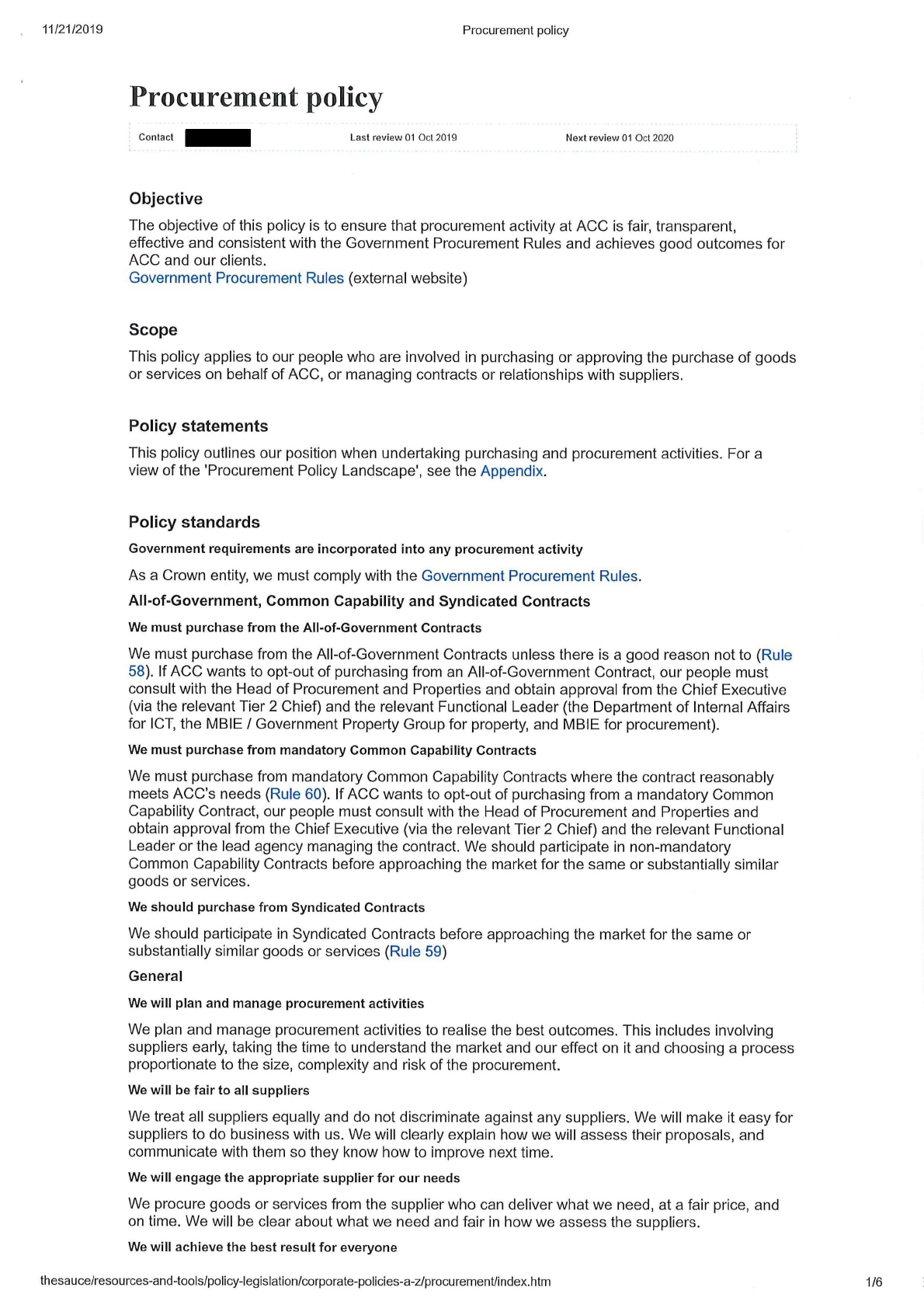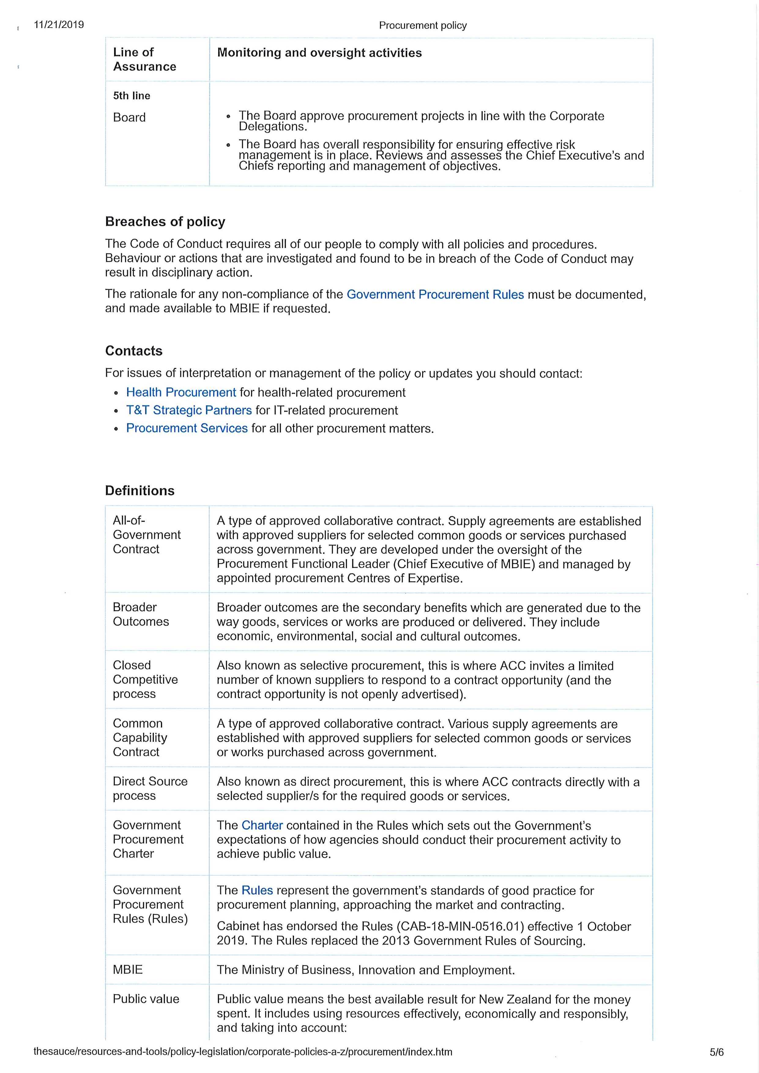 - ACC’s Procurement policy