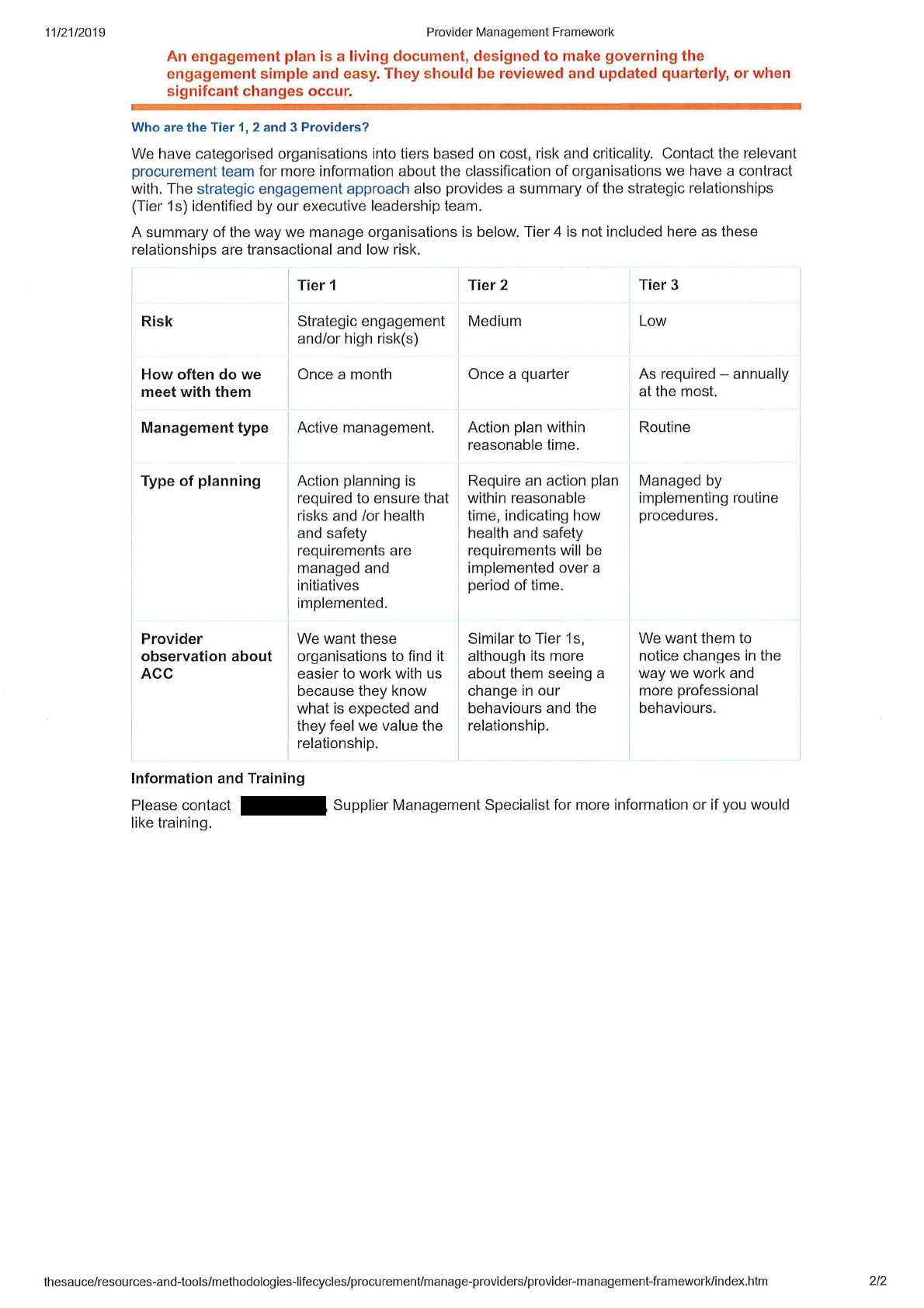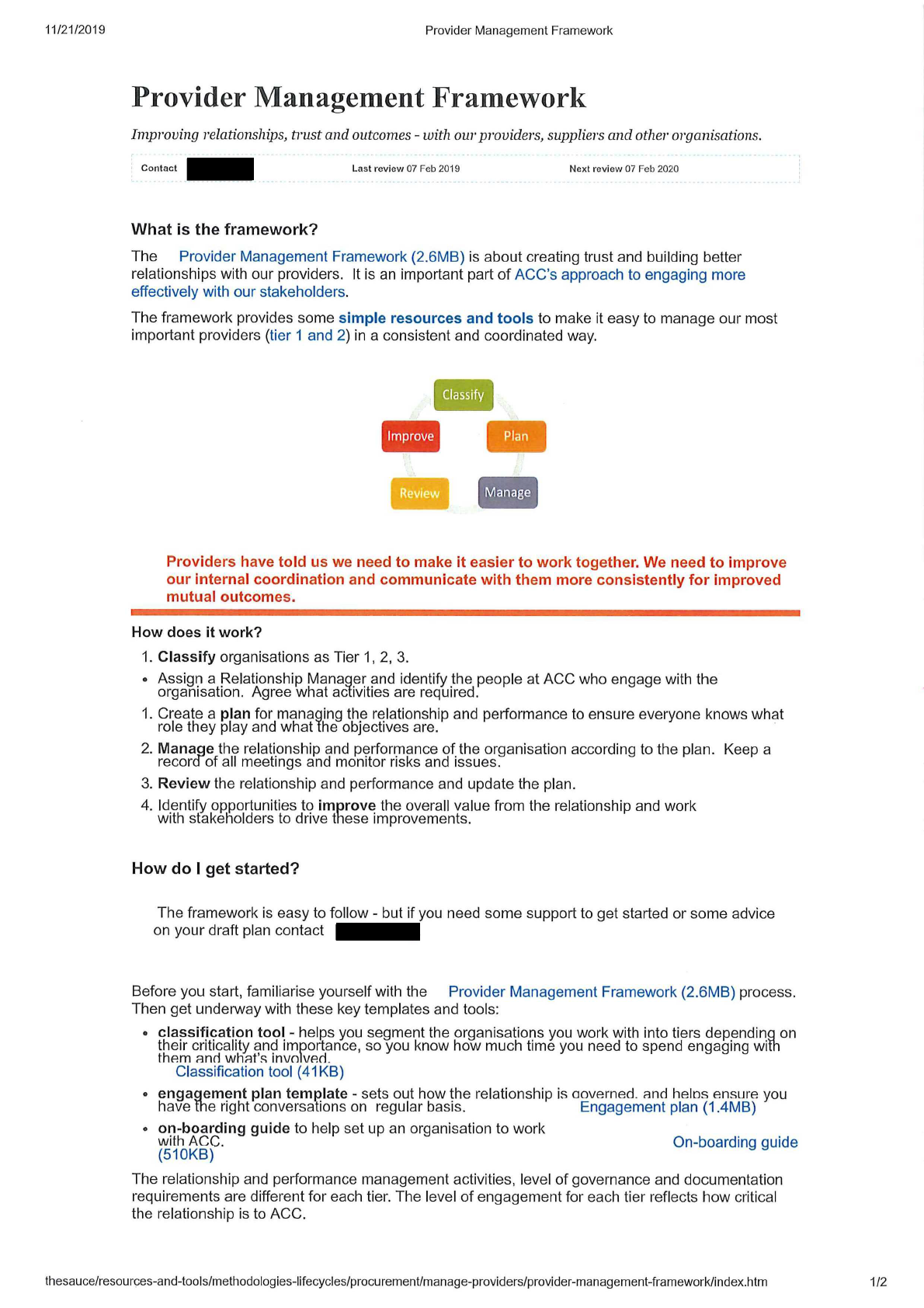 - ACC’s Provider Management Framework