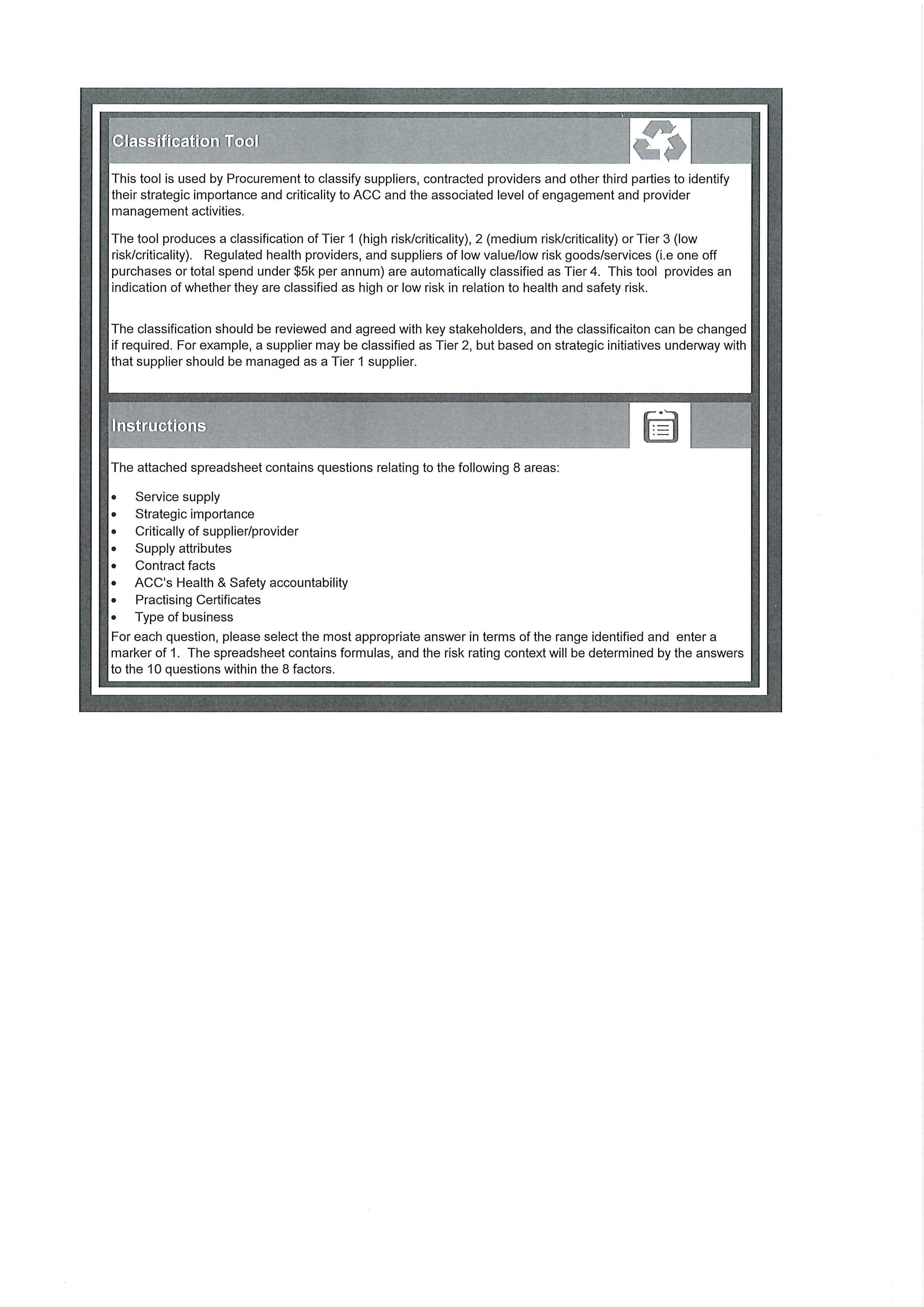 - ACC’s Classification Tool for Providers, Suppliers and Third parties