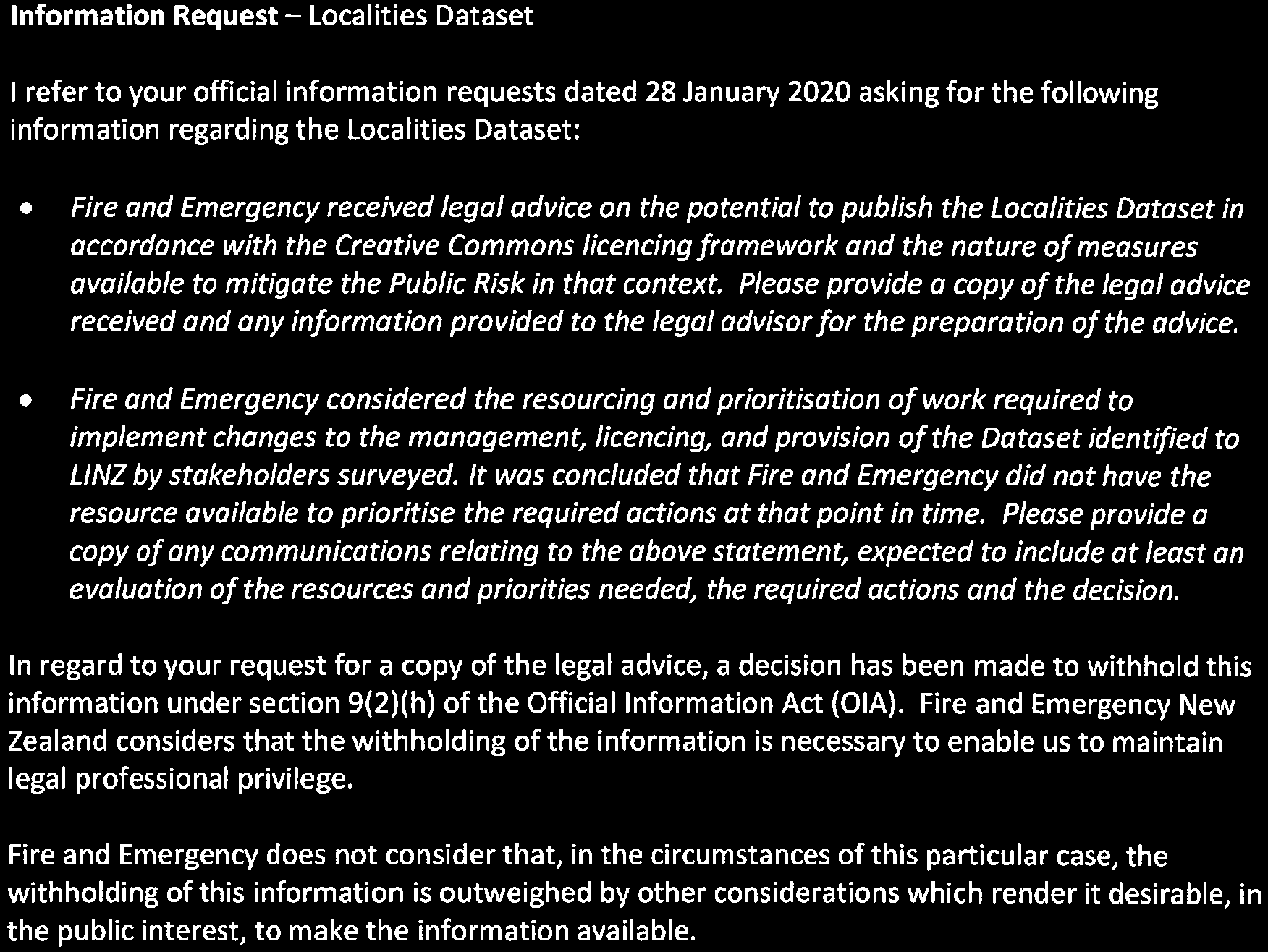 Please supply the evaluation of resource and priority for a change to the licence of the NZ Localities dataset