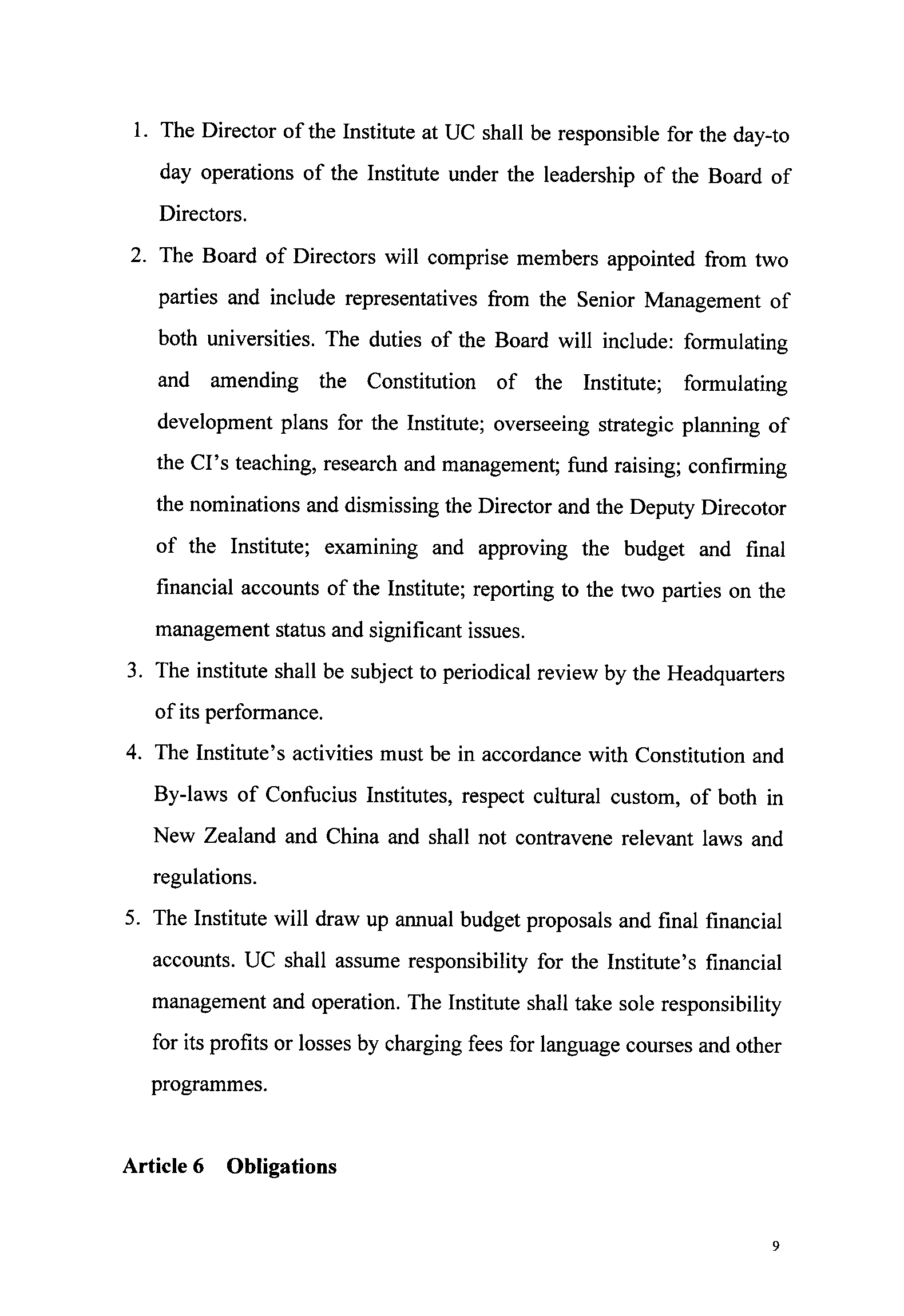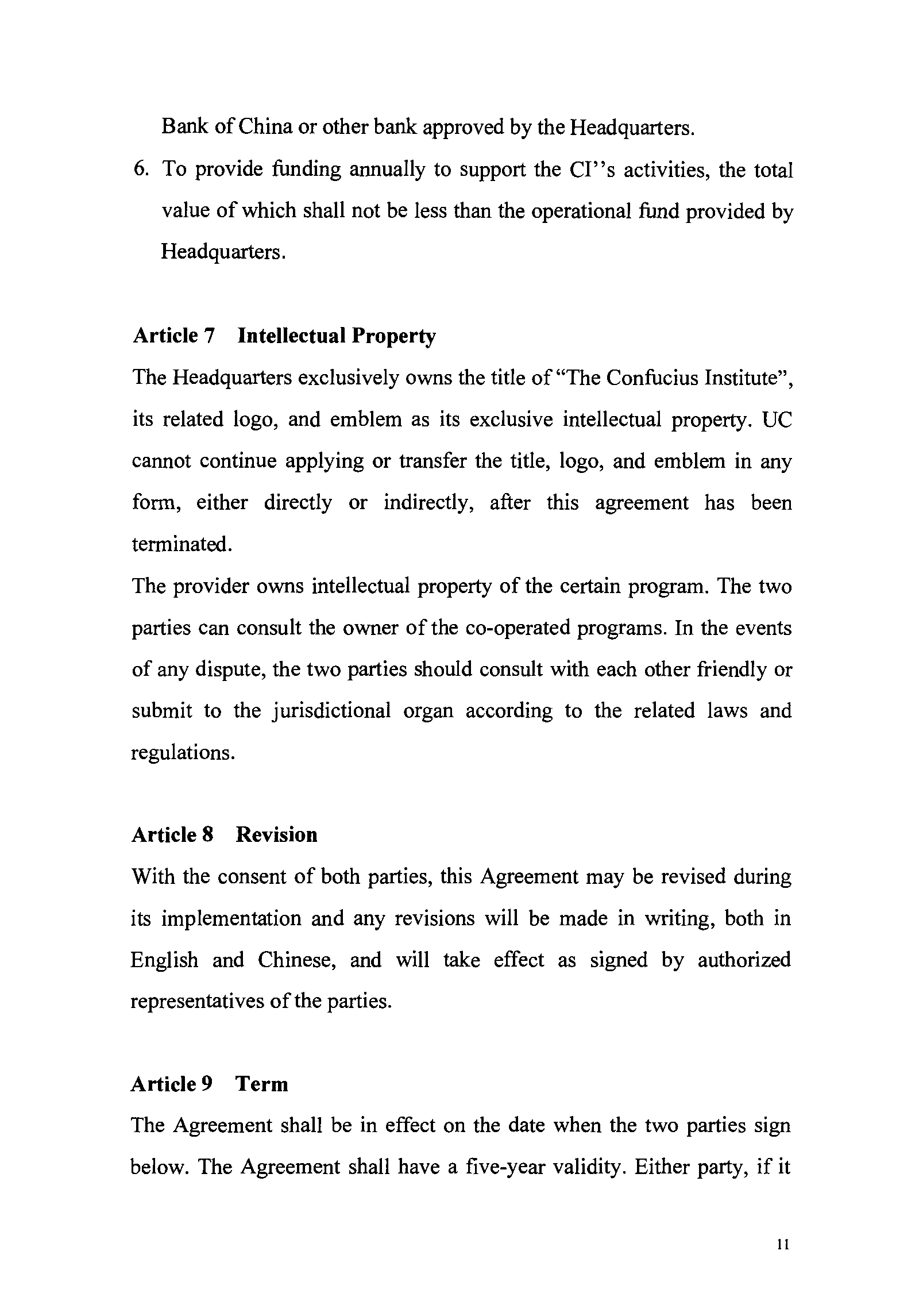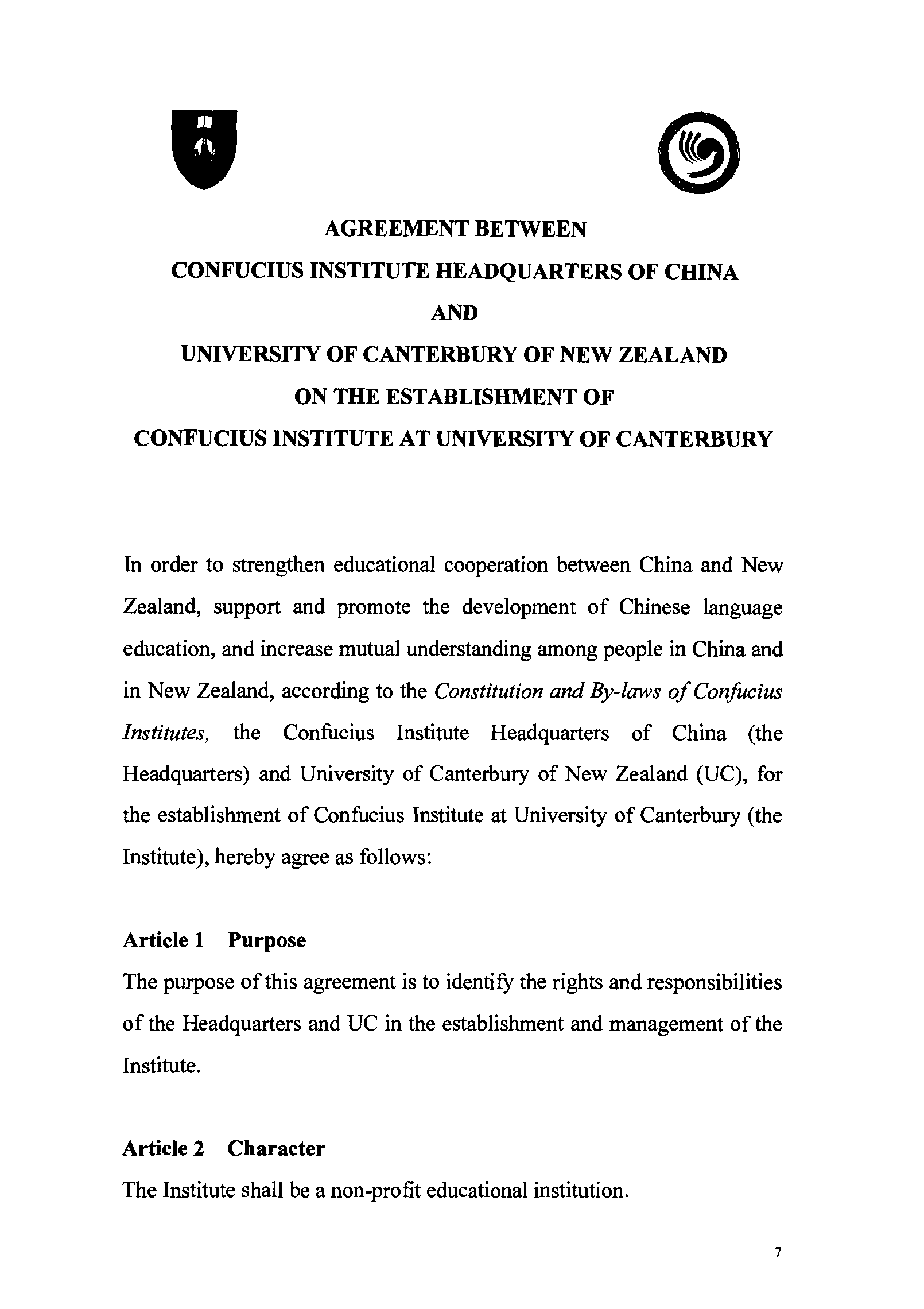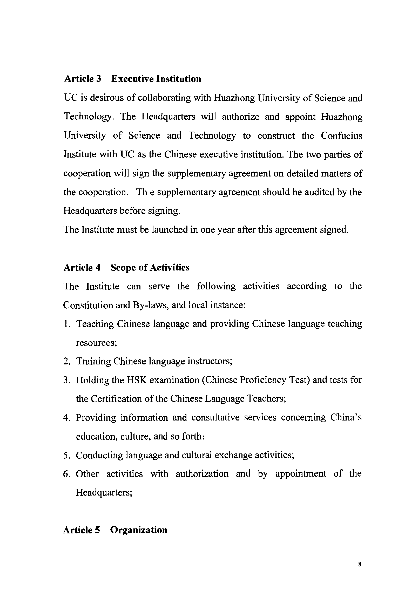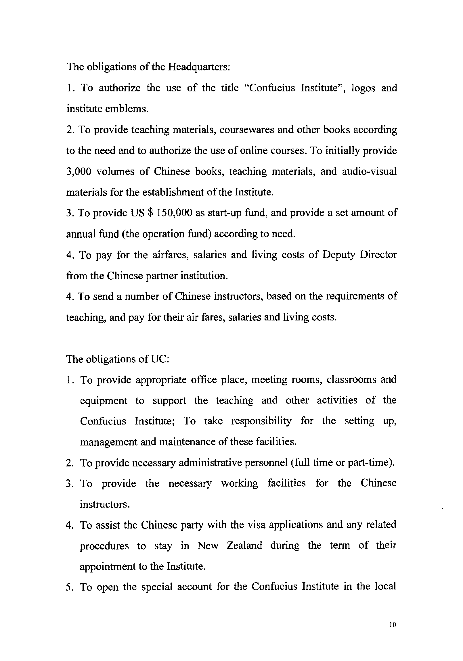 Agreements on the Confucius Institute