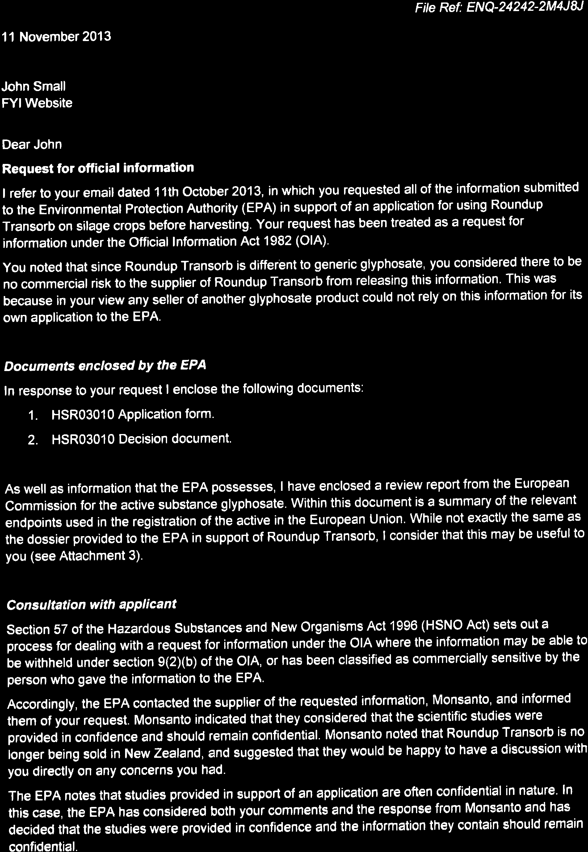 Evidence supporting use of Roundup Transorb on silage before harvest
