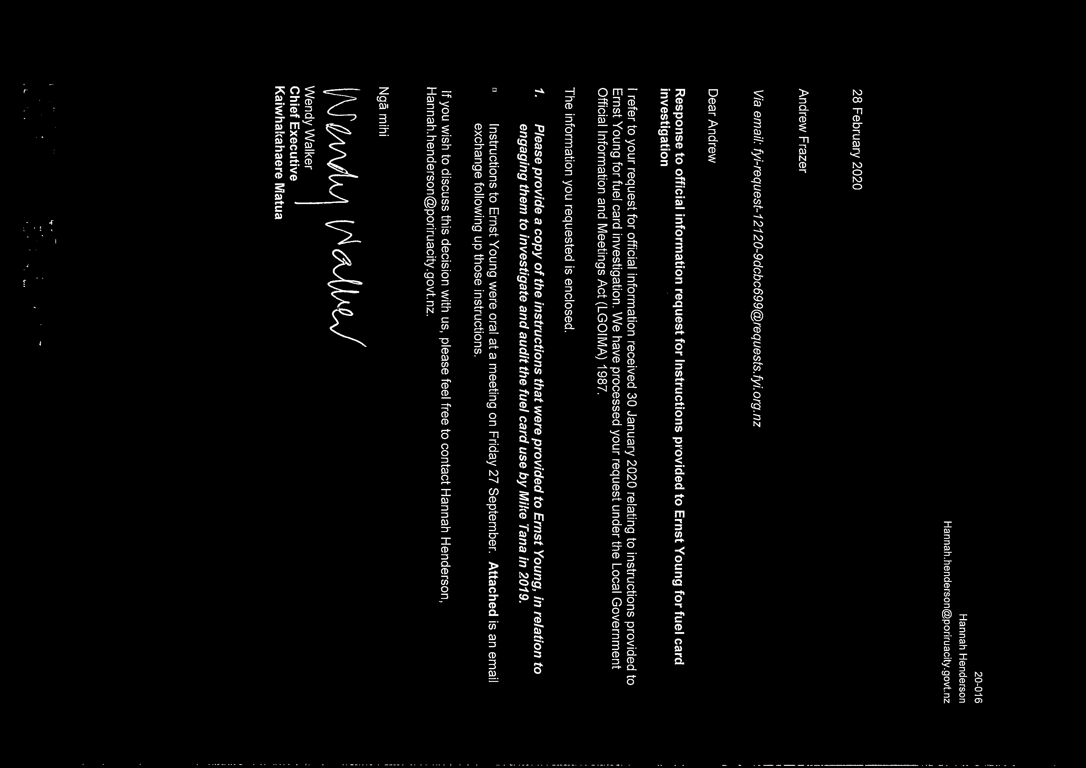 Instructions provided to Ernst Young for Fuel Card Investigation