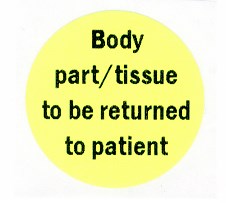 cultural obligations pertaining to the storage, return to patient and cremation of body parts and human