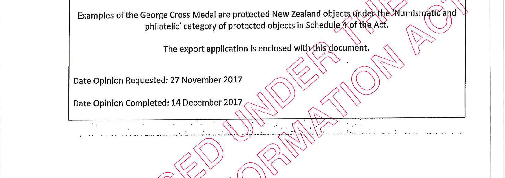 Decision to allow export of George Cross to Stuart Guthrie, NZ Police