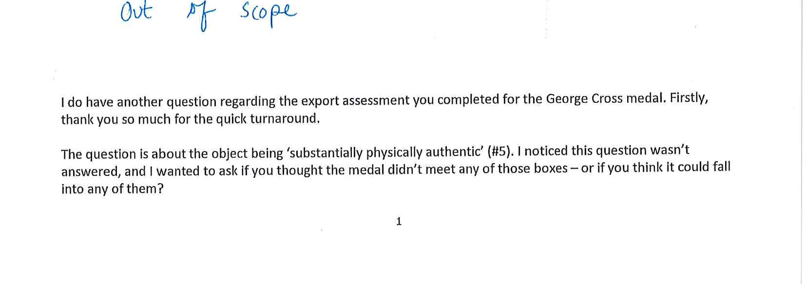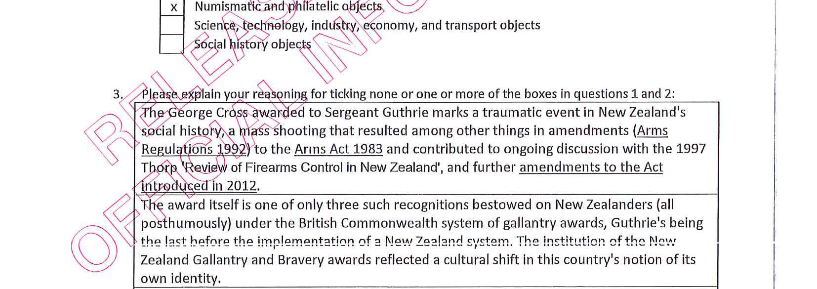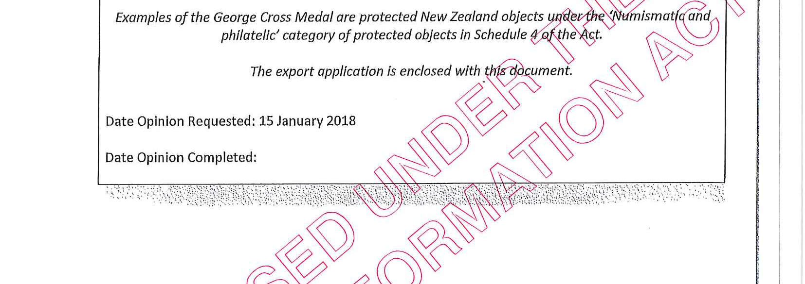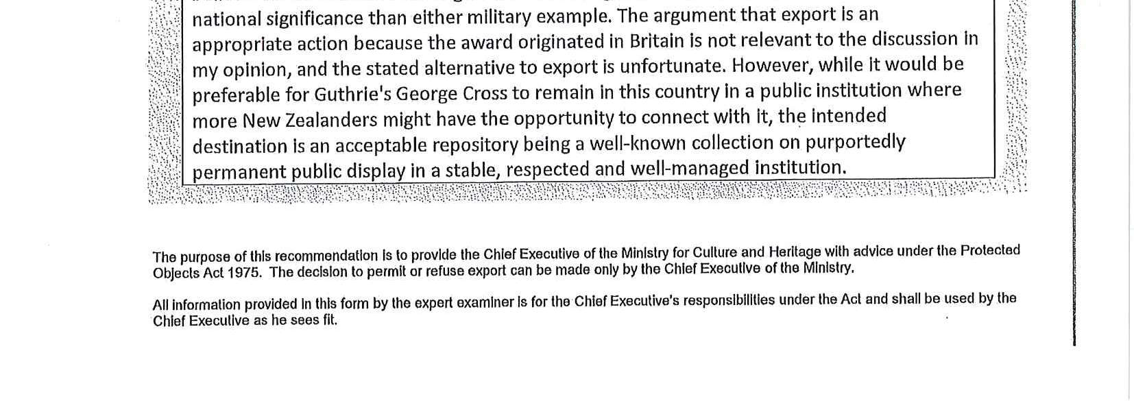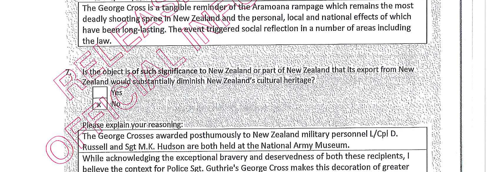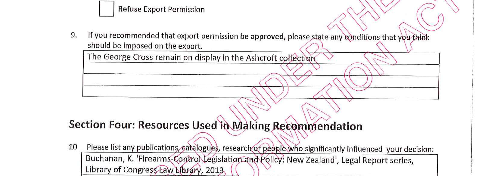 Decision to allow export of George Cross to Stuart Guthrie, NZ Police