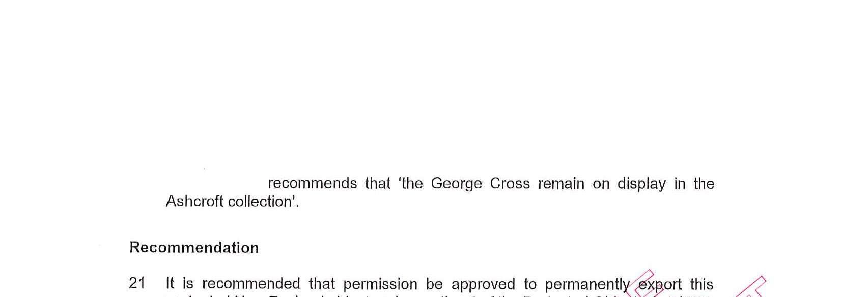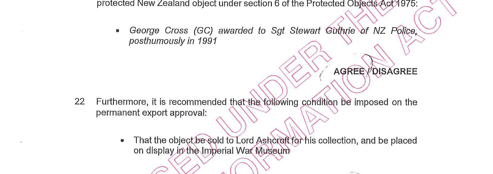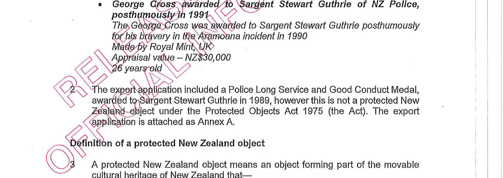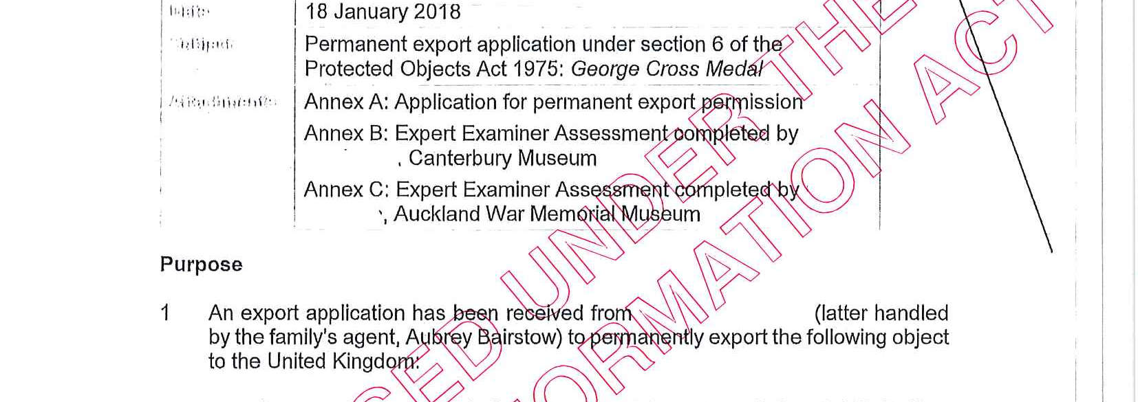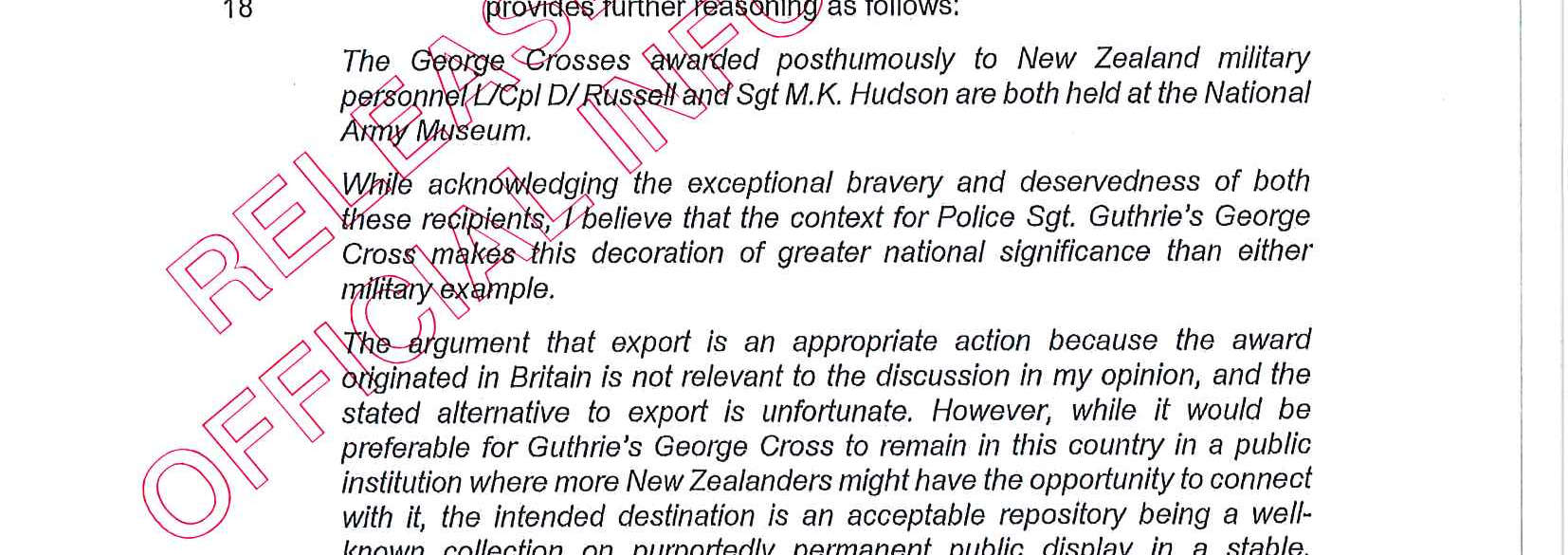 Decision to allow export of George Cross to Stuart Guthrie, NZ Police