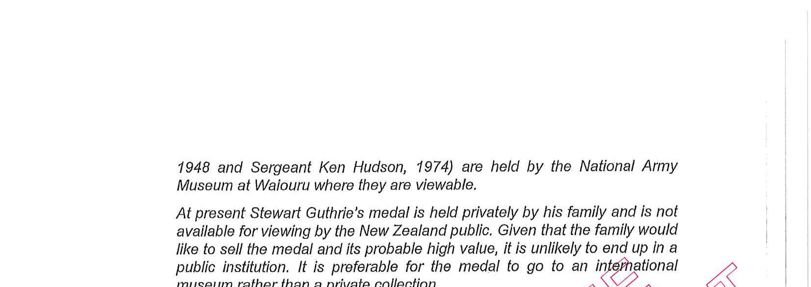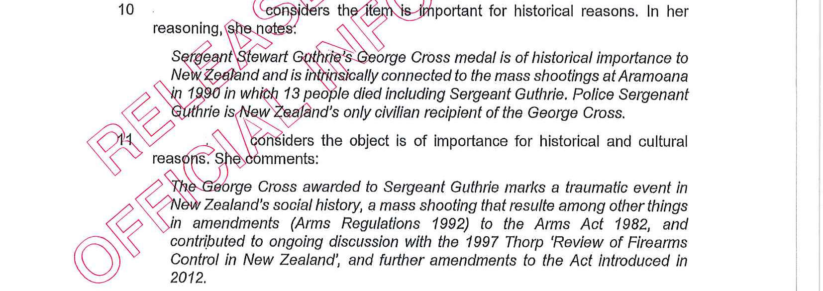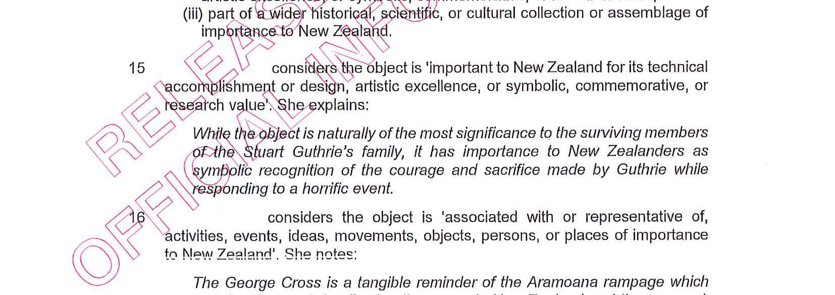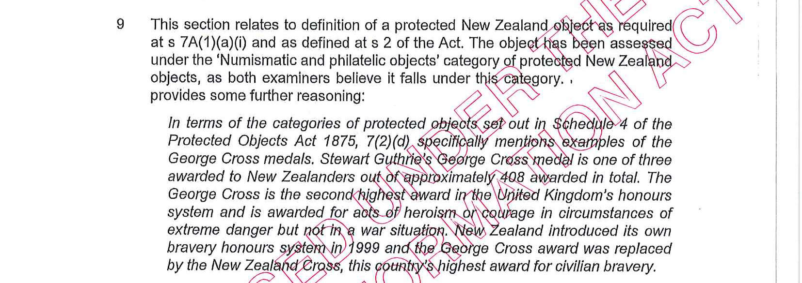 Decision to allow export of George Cross to Stuart Guthrie, NZ Police