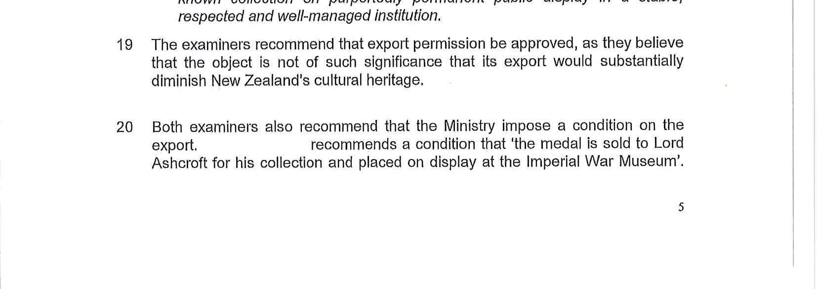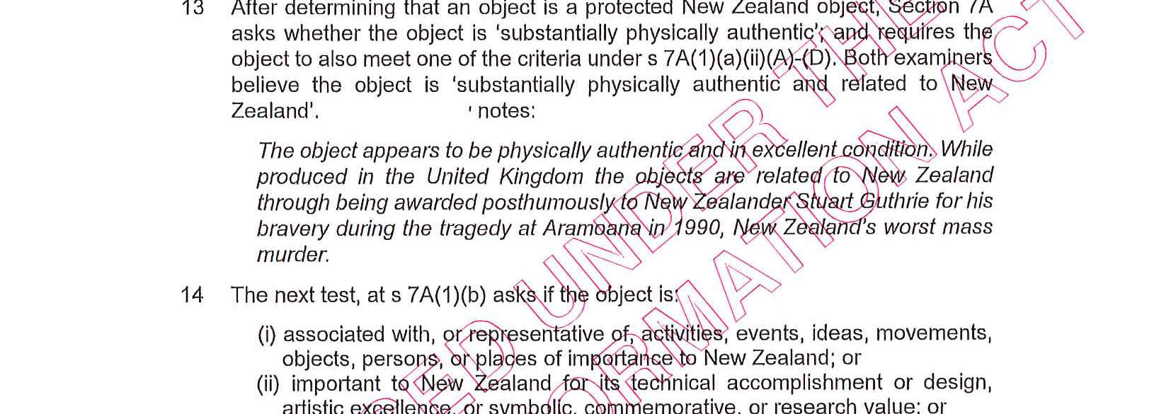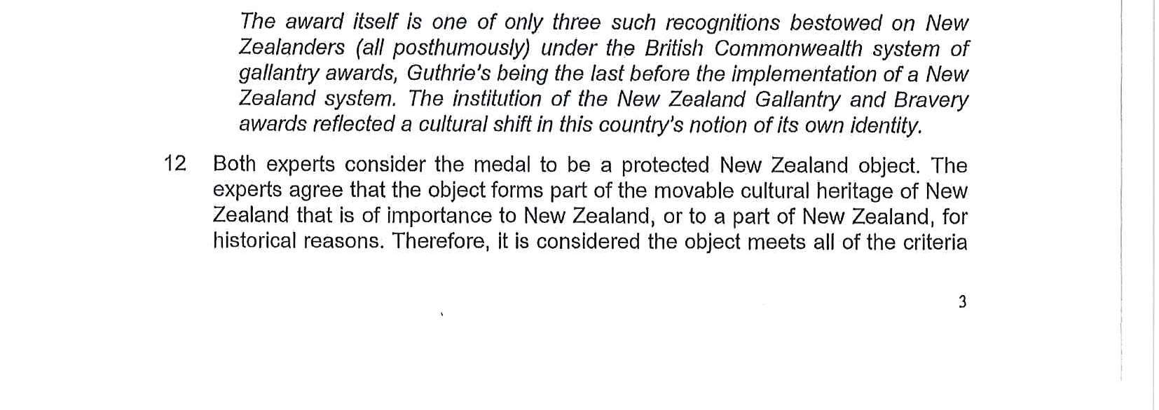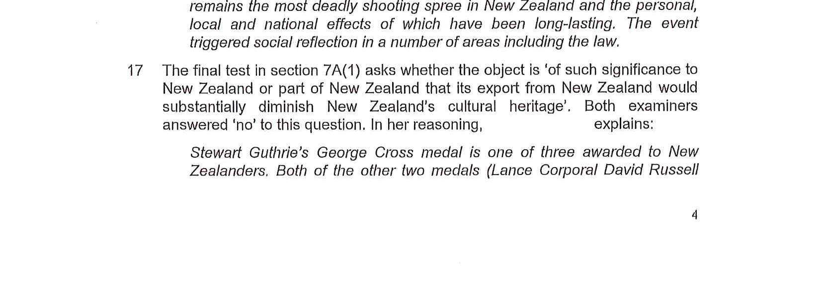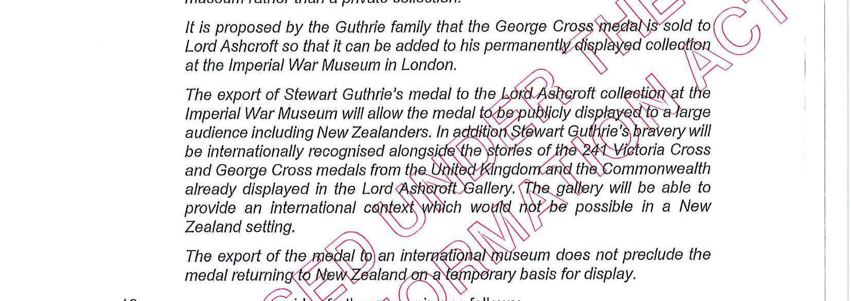 Decision to allow export of George Cross to Stuart Guthrie, NZ Police