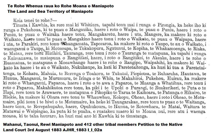 Maniapoto tribal territory (rohe) at 1883 prior to it being alienated unlawfully in 1886. Beforehand