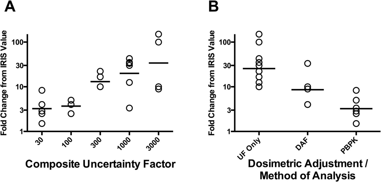 EPA’s IRIS program, when individual UFs were represented using this approach, the geometric mean fold